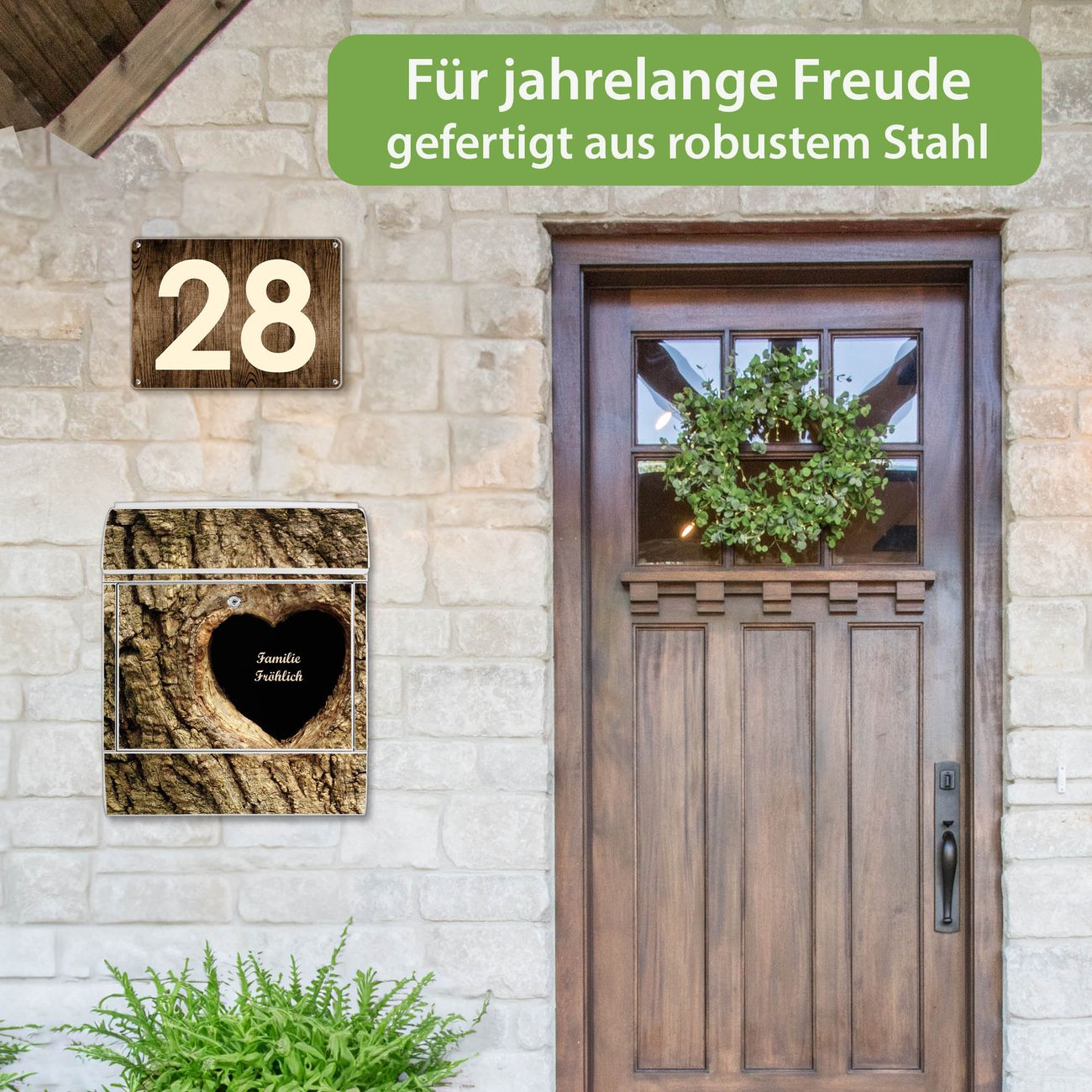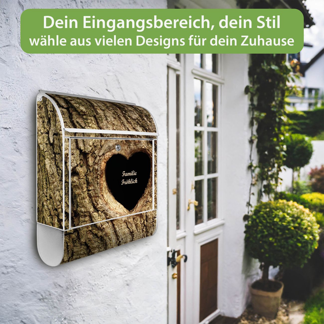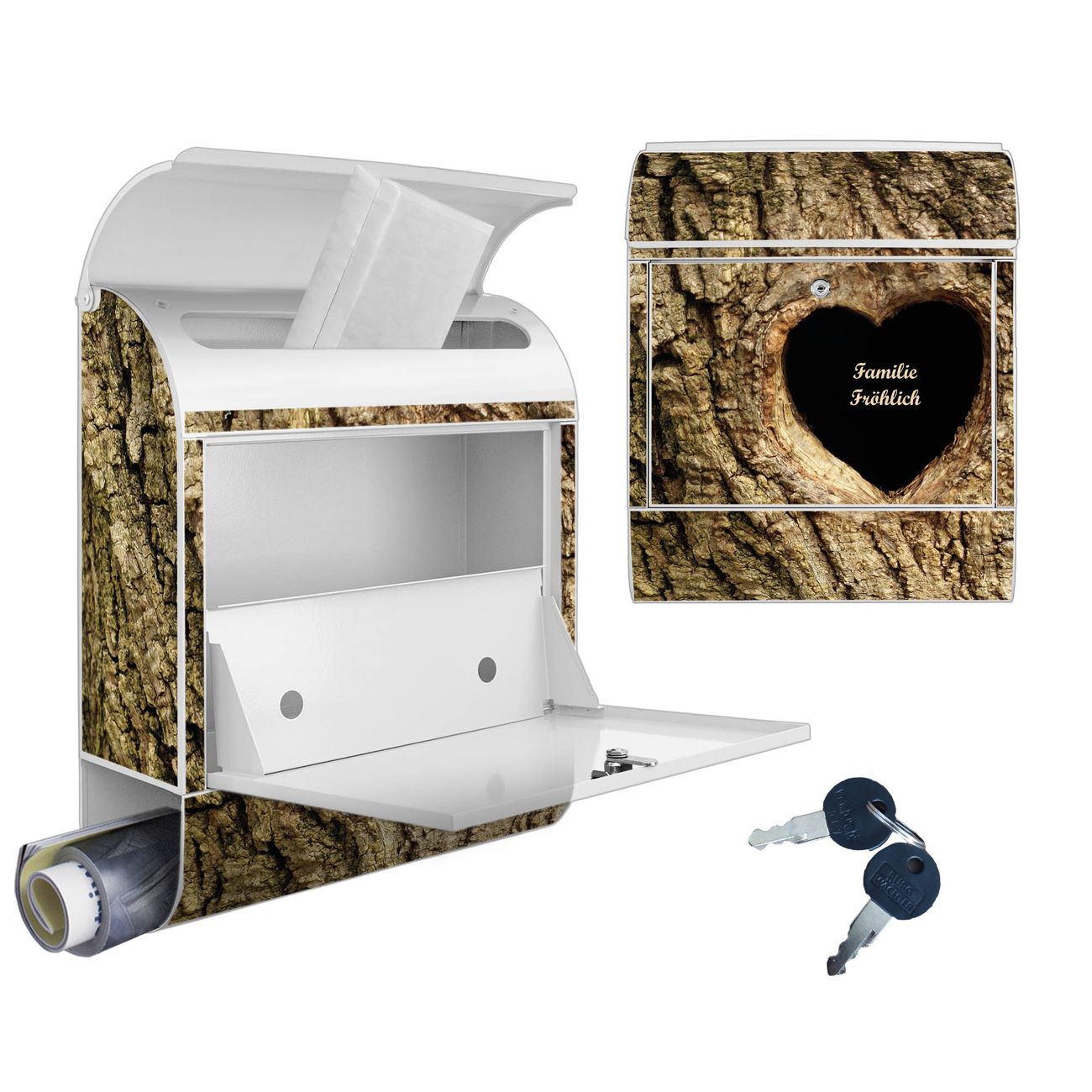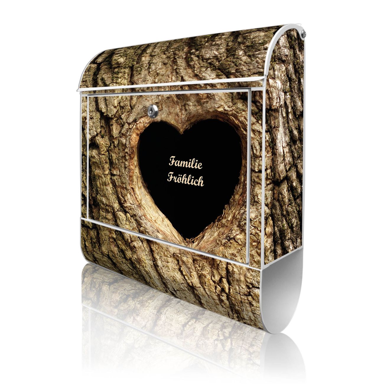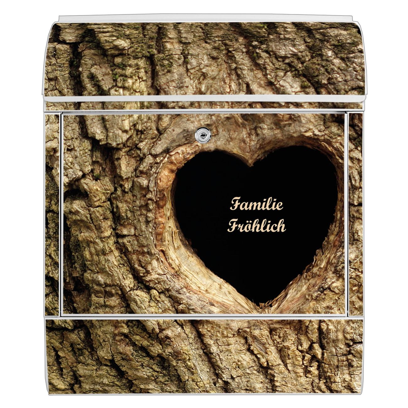 Großer Stahl Briefkasten Motiv Baumherz