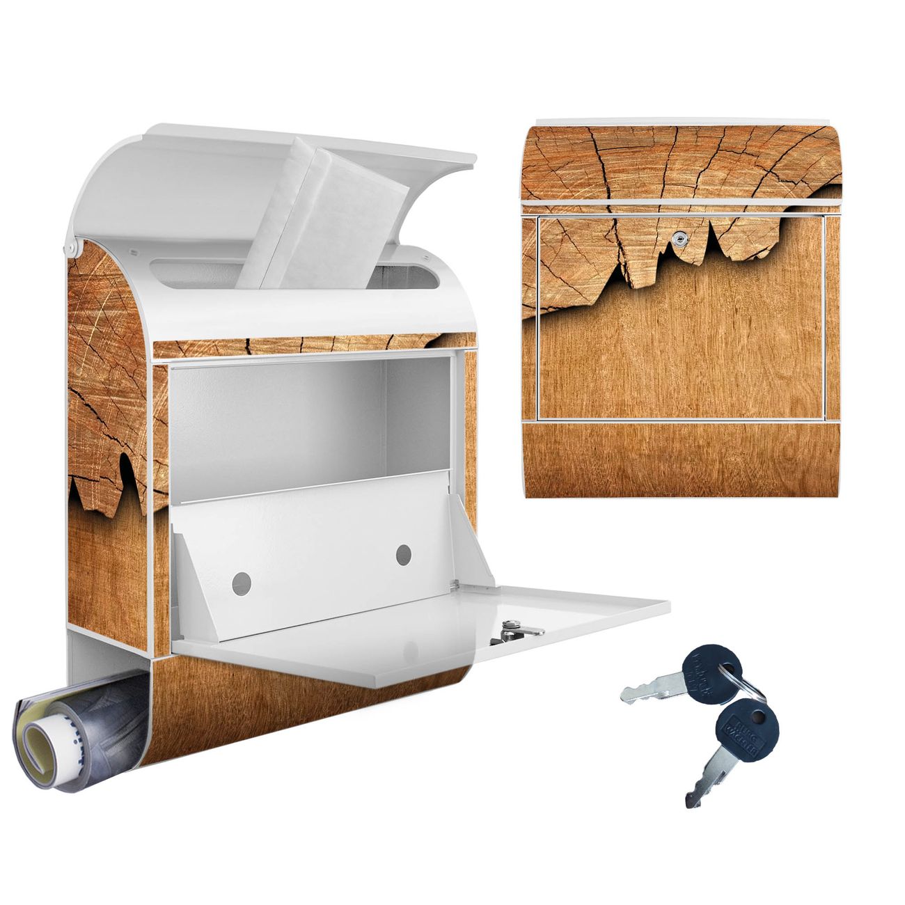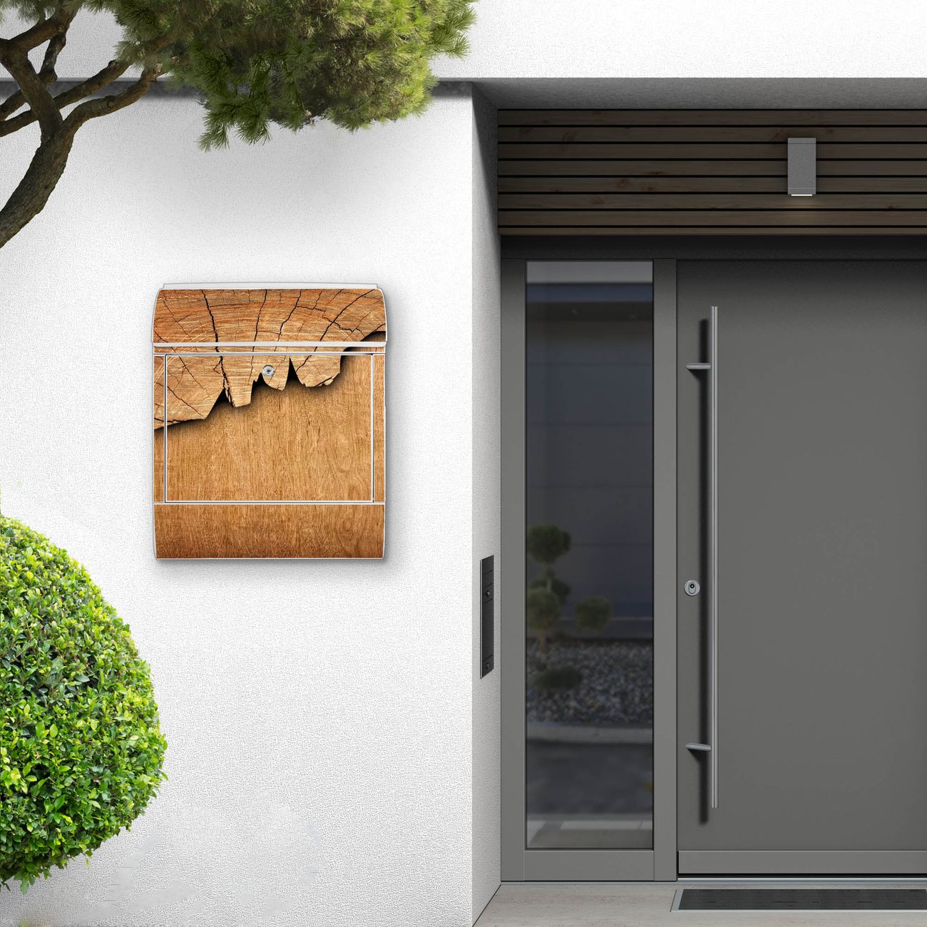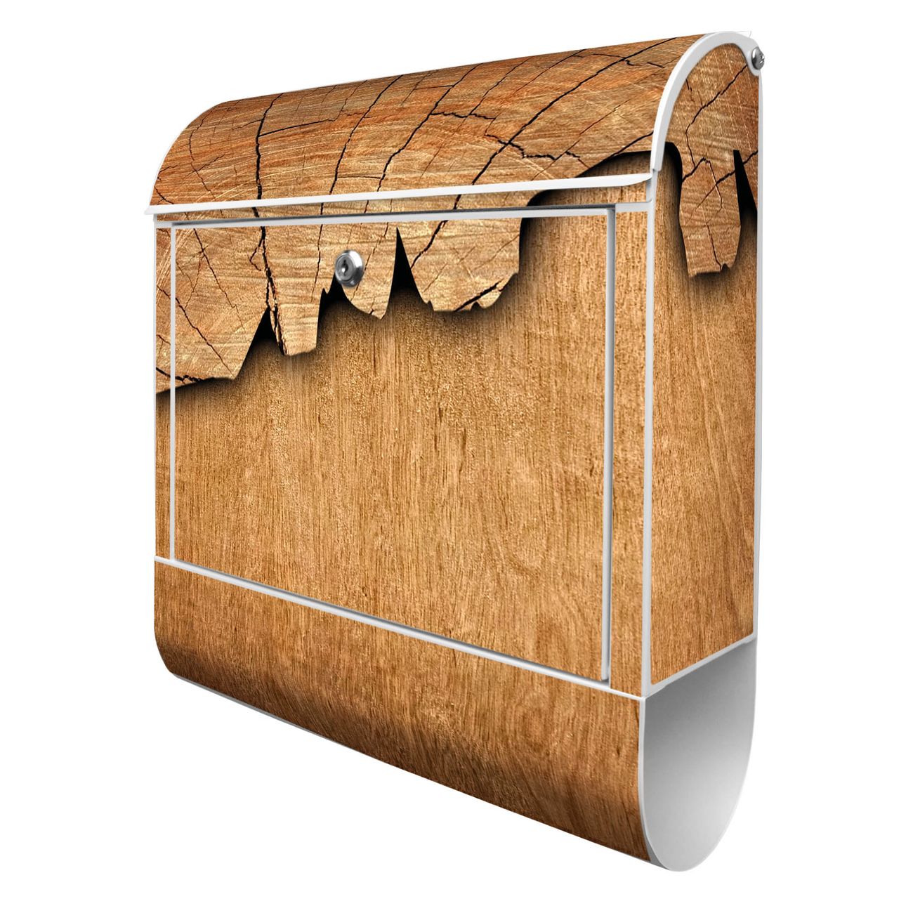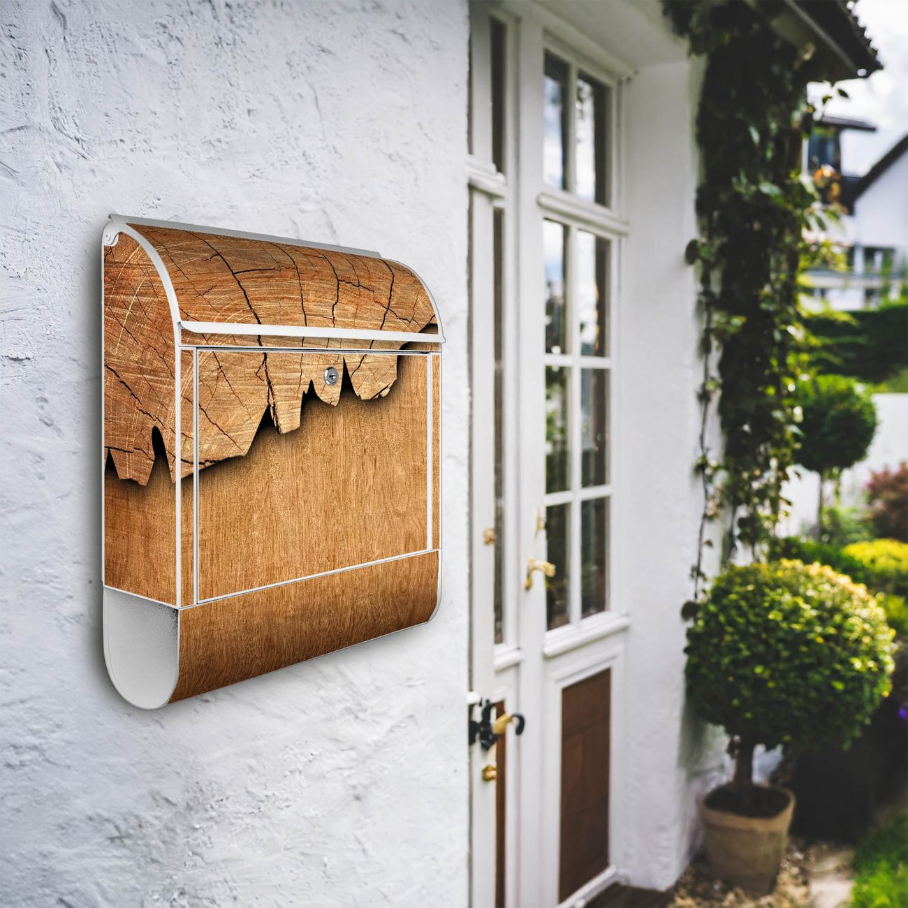 DESIGN: Der Postkasten mit Motiv Baumscheibe hat ein sehr ansprechendes und ausgefallenes Design, damit entlocken Sie Ihren Nachbarn und dem Postboten ein Lächeln. Heben Sie Sich von der tristen grauen Masse ab, ohne auf Funktionalität zu verzichten. DETAILS: Der Postkasten besteht aus pulverbeschichtetem Stahl. Er ist 38x46x12,5cm groß. Das Motiv besteht aus einer wetter- und UV-resistenten Folie, die mit einem Schutzlaminat überzogen ist, sodass der Briefkasten zusätzlich vor Kratzern geschützt ist. Der Briefkasten wird mit Montagematerial, zusätzlich zwei Schlüssel sowie einer Bohrschablone geliefert. NUTZEN: Sie können diesen Briefkasten sowohl als Wandbriefkasten montieren oder einen passenden Ständer kaufen und als Standbriefkasten einbetonieren. Die Größe bietet genügend Platz für Sendungen aller Art, der Einwurf fasst auch größere A4 Sendungen. BANJADO: Ihr Briefkasten wird in Sachsen in einer kleinen Manufaktur von Hand veredelt. Die Motivfolie ist lösungsmittelfrei und schutzlaminiert für einen langen Halt. Wir legen großen Wert auf die Verbindung von Funktionalität und Design. Sie erhalten Handarbeit aus Sachsen.