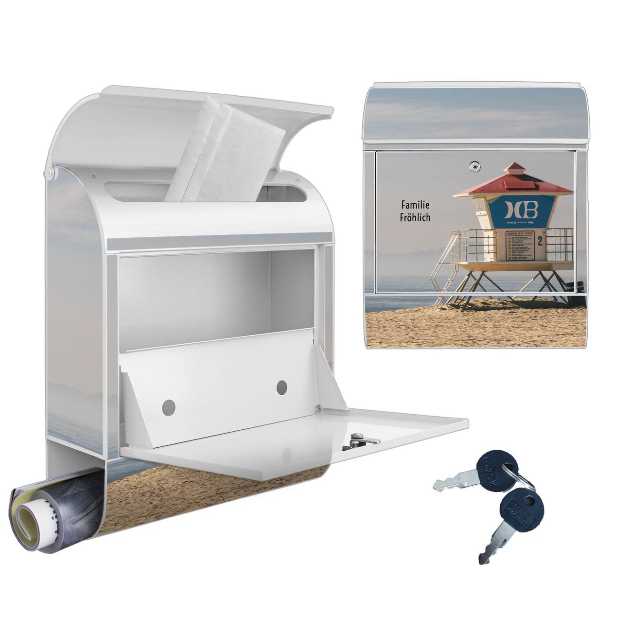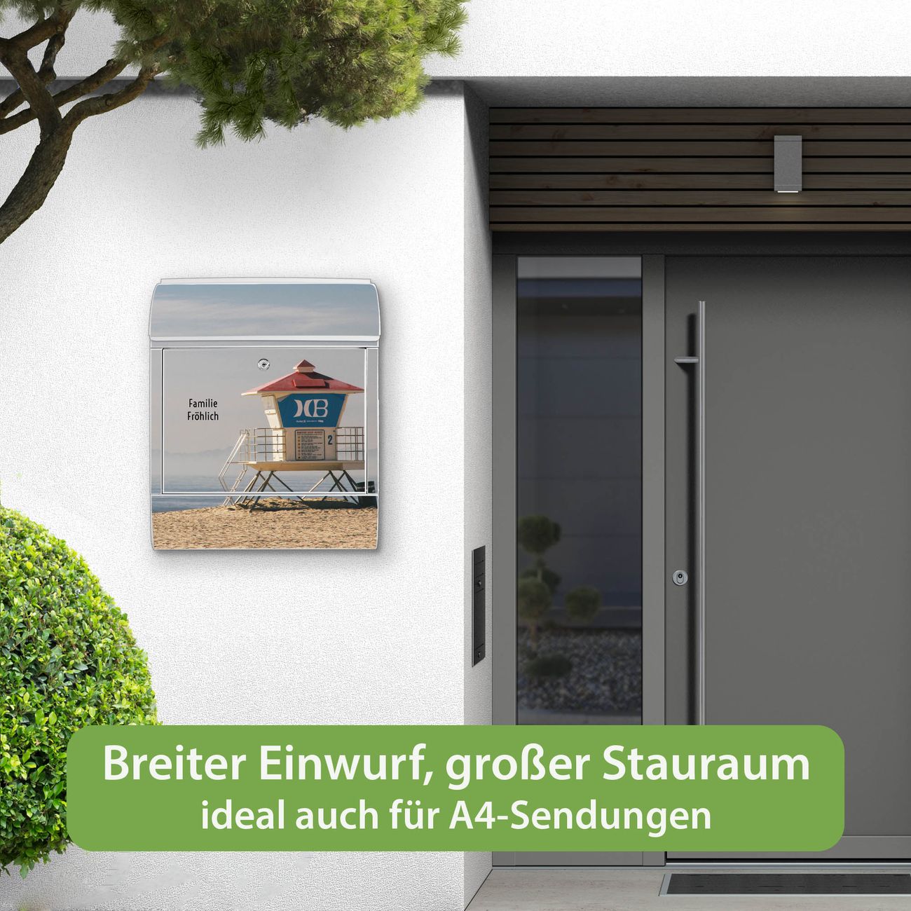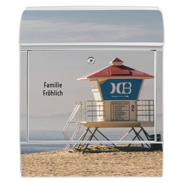 DESIGN: Der Postkasten mit Motiv Motiv Beach Section hat ein sehr ansprechendes und ausgefallenes Design, damit entlocken Sie Ihren Nachbarn und dem Postboten ein Lächeln. Heben Sie Sich von der tristen grauen Masse ab, ohne auf Funktionalität zu verzichten. DETAILS: Der Postkasten besteht aus pulverbeschichtetem Stahl. Er ist 38x46x12,5cm groß. Das Motiv besteht aus einer wetter- und UV-resistenten Folie, die mit einem Schutzlaminat überzogen ist, sodass der Briefkasten zusätzlich vor Kratzern geschützt ist. Der Briefkasten wird mit Montagematerial, zusätzlich zwei Schlüssel sowie einer Bohrschablone geliefert. NUTZEN: Sie können diesen Briefkasten sowohl als Wandbriefkasten montieren oder einen passenden Ständer kaufen und als Standbriefkasten einbetonieren. Die Größe bietet genügend Platz für Sendungen aller Art, der Einwurf fasst auch größere A4 Sendungen. BANJADO: Ihr Briefkasten wird in Sachsen in einer kleinen Manufaktur von Hand veredelt. Die Motivfolie ist lösungsmittelfrei und schutzlaminiert für einen langen Halt. Wir legen großen Wert auf die Verbindung von Funktionalität und Design. Sie erhalten Handarbeit aus Sachsen.