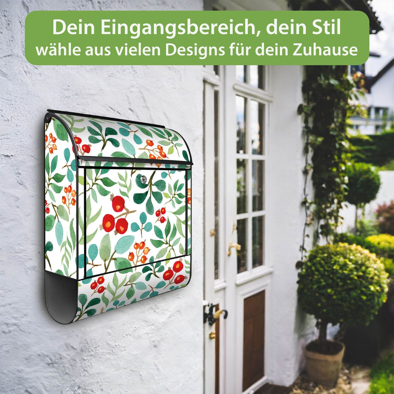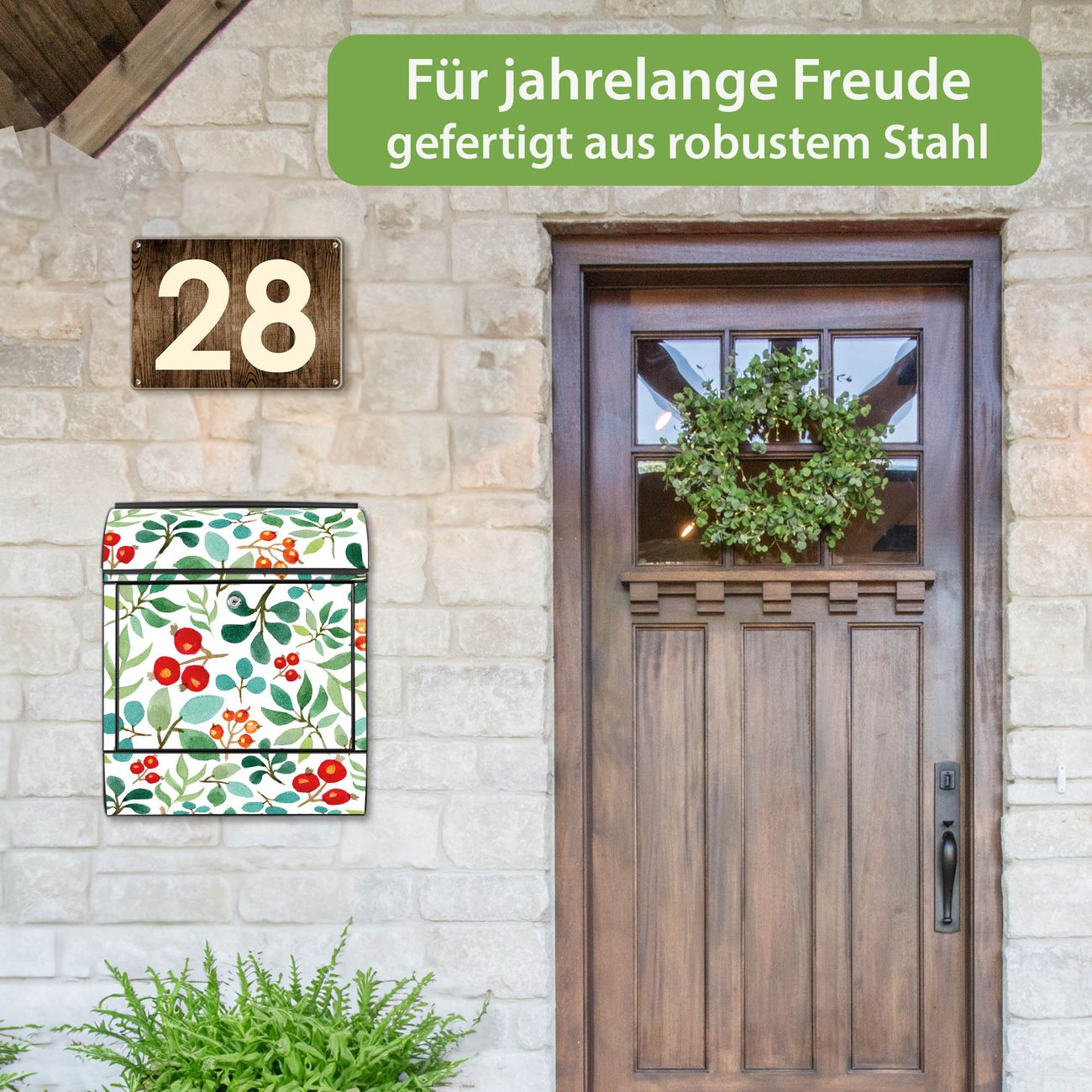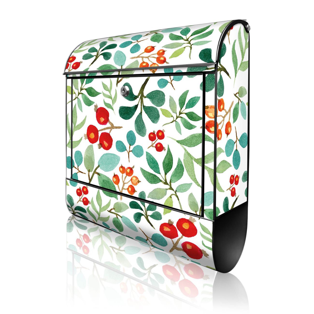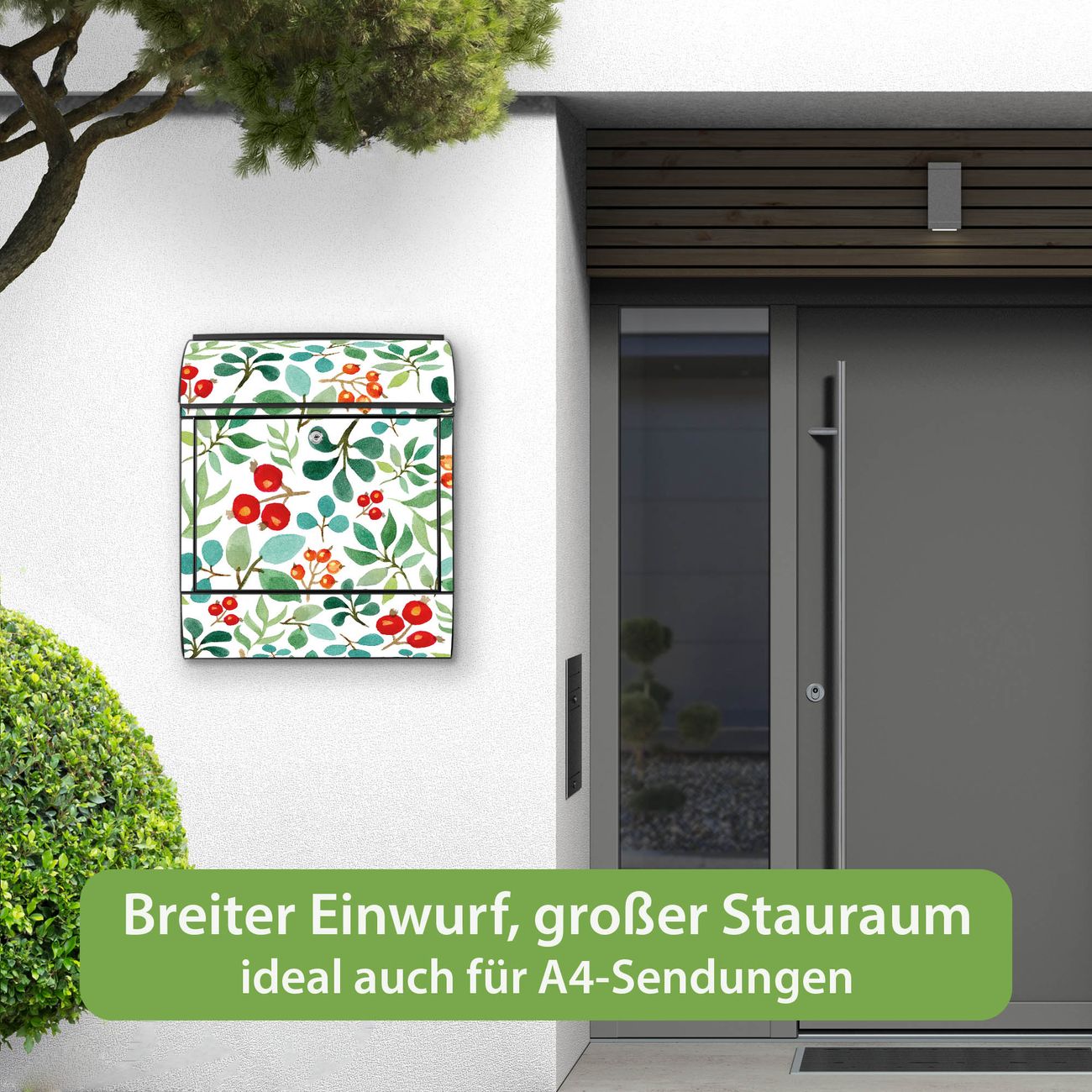 Großer Stahl Briefkasten Motiv Beeren und Blätter