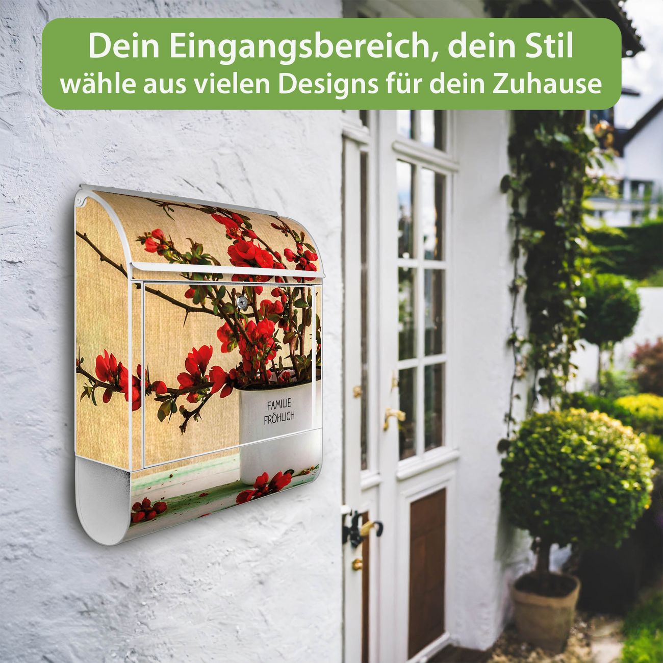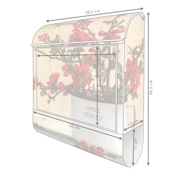 DESIGN: Der Postkasten mit Motiv Motiv Berberitzen hat ein sehr ansprechendes und ausgefallenes Design, damit entlocken Sie Ihren Nachbarn und dem Postboten ein Lächeln. Heben Sie Sich von der tristen grauen Masse ab, ohne auf Funktionalität zu verzichten. DETAILS: Der Postkasten besteht aus pulverbeschichtetem Stahl. Er ist 38x46x12,5cm groß. Das Motiv besteht aus einer wetter- und UV-resistenten Folie, die mit einem Schutzlaminat überzogen ist, sodass der Briefkasten zusätzlich vor Kratzern geschützt ist. Der Briefkasten wird mit Montagematerial, zusätzlich zwei Schlüssel sowie einer Bohrschablone geliefert. NUTZEN: Sie können diesen Briefkasten sowohl als Wandbriefkasten montieren oder einen passenden Ständer kaufen und als Standbriefkasten einbetonieren. Die Größe bietet genügend Platz für Sendungen aller Art, der Einwurf fasst auch größere A4 Sendungen. BANJADO: Ihr Briefkasten wird in Sachsen in einer kleinen Manufaktur von Hand veredelt. Die Motivfolie ist lösungsmittelfrei und schutzlaminiert für einen langen Halt. Wir legen großen Wert auf die Verbindung von Funktionalität und Design. Sie erhalten Handarbeit aus Sachsen.