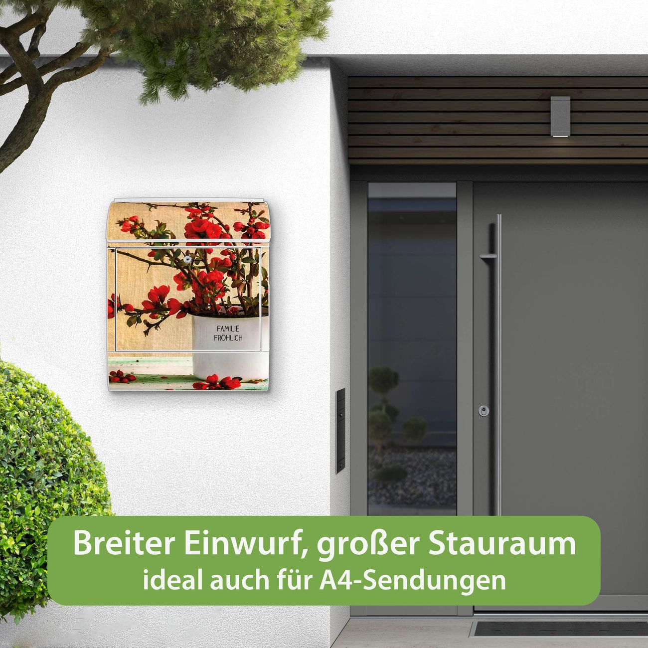 Großer Stahl Briefkasten Motiv Berberitzen