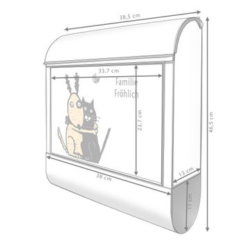 DESIGN: Der Postkasten mit Motiv Motiv Beste Freunde Immer hat ein sehr ansprechendes und ausgefallenes Design, damit entlocken Sie Ihren Nachbarn und dem Postboten ein Lächeln. Heben Sie Sich von der tristen grauen Masse ab, ohne auf Funktionalität zu verzichten. DETAILS: Der Postkasten besteht aus pulverbeschichtetem Stahl. Er ist 38x46x12,5cm groß. Das Motiv besteht aus einer wetter- und UV-resistenten Folie, die mit einem Schutzlaminat überzogen ist, sodass der Briefkasten zusätzlich vor Kratzern geschützt ist. Der Briefkasten wird mit Montagematerial, zusätzlich zwei Schlüssel sowie einer Bohrschablone geliefert. NUTZEN: Sie können diesen Briefkasten sowohl als Wandbriefkasten montieren oder einen passenden Ständer kaufen und als Standbriefkasten einbetonieren. Die Größe bietet genügend Platz für Sendungen aller Art, der Einwurf fasst auch größere A4 Sendungen. BANJADO: Ihr Briefkasten wird in Sachsen in einer kleinen Manufaktur von Hand veredelt. Die Motivfolie ist lösungsmittelfrei und schutzlaminiert für einen langen Halt. Wir legen großen Wert auf die Verbindung von Funktionalität und Design. Sie erhalten Handarbeit aus Sachsen.