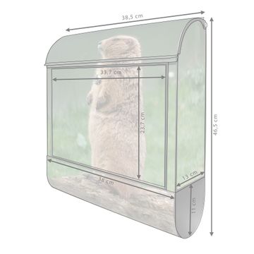 DESIGN: Der Postkasten mit Motiv Motiv Biber hat ein sehr ansprechendes und ausgefallenes Design, damit entlocken Sie Ihren Nachbarn und dem Postboten ein Lächeln. Heben Sie Sich von der tristen grauen Masse ab, ohne auf Funktionalität zu verzichten. DETAILS: Der Postkasten besteht aus pulverbeschichtetem Stahl. Er ist 38x46x12,5cm groß. Das Motiv besteht aus einer wetter- und UV-resistenten Folie, die mit einem Schutzlaminat überzogen ist, sodass der Briefkasten zusätzlich vor Kratzern geschützt ist. Der Briefkasten wird mit Montagematerial, zusätzlich zwei Schlüssel sowie einer Bohrschablone geliefert. NUTZEN: Sie können diesen Briefkasten sowohl als Wandbriefkasten montieren oder einen passenden Ständer kaufen und als Standbriefkasten einbetonieren. Die Größe bietet genügend Platz für Sendungen aller Art, der Einwurf fasst auch größere A4 Sendungen. BANJADO: Ihr Briefkasten wird in Sachsen in einer kleinen Manufaktur von Hand veredelt. Die Motivfolie ist lösungsmittelfrei und schutzlaminiert für einen langen Halt. Wir legen großen Wert auf die Verbindung von Funktionalität und Design. Sie erhalten Handarbeit aus Sachsen.