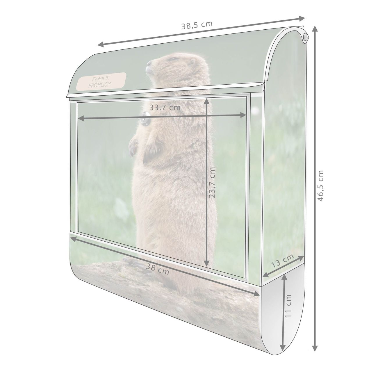 DESIGN: Der Postkasten mit Motiv Motiv Biber hat ein sehr ansprechendes und ausgefallenes Design, damit entlocken Sie Ihren Nachbarn und dem Postboten ein Lächeln. Heben Sie Sich von der tristen grauen Masse ab, ohne auf Funktionalität zu verzichten. DETAILS: Der Postkasten besteht aus pulverbeschichtetem Stahl. Er ist 38x46x12,5cm groß. Das Motiv besteht aus einer wetter- und UV-resistenten Folie, die mit einem Schutzlaminat überzogen ist, sodass der Briefkasten zusätzlich vor Kratzern geschützt ist. Der Briefkasten wird mit Montagematerial, zusätzlich zwei Schlüssel sowie einer Bohrschablone geliefert. NUTZEN: Sie können diesen Briefkasten sowohl als Wandbriefkasten montieren oder einen passenden Ständer kaufen und als Standbriefkasten einbetonieren. Die Größe bietet genügend Platz für Sendungen aller Art, der Einwurf fasst auch größere A4 Sendungen. BANJADO: Ihr Briefkasten wird in Sachsen in einer kleinen Manufaktur von Hand veredelt. Die Motivfolie ist lösungsmittelfrei und schutzlaminiert für einen langen Halt. Wir legen großen Wert auf die Verbindung von Funktionalität und Design. Sie erhalten Handarbeit aus Sachsen.
