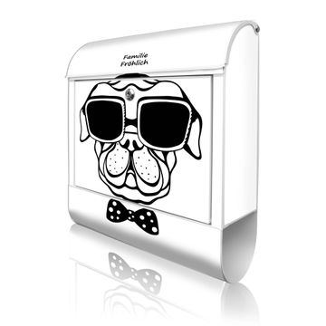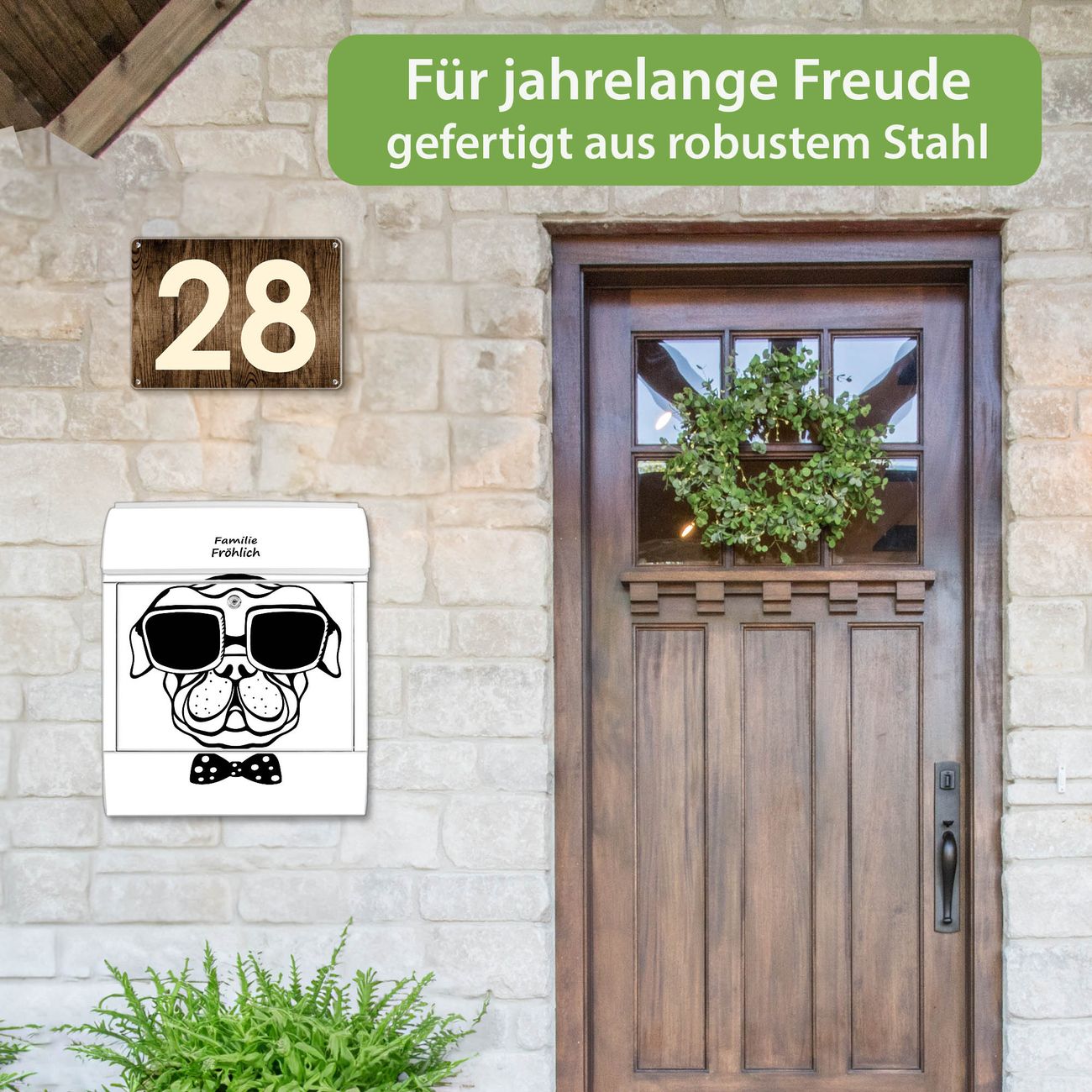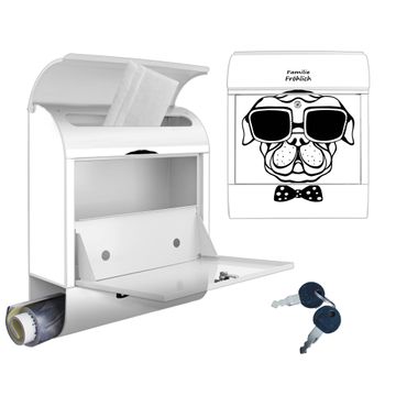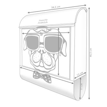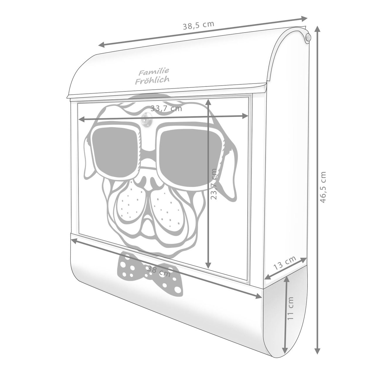 DESIGN: Der Postkasten mit Motiv Motiv Big Boss hat ein sehr ansprechendes und ausgefallenes Design, damit entlocken Sie Ihren Nachbarn und dem Postboten ein Lächeln. Heben Sie Sich von der tristen grauen Masse ab, ohne auf Funktionalität zu verzichten. DETAILS: Der Postkasten besteht aus pulverbeschichtetem Stahl. Er ist 38x46x12,5cm groß. Das Motiv besteht aus einer wetter- und UV-resistenten Folie, die mit einem Schutzlaminat überzogen ist, sodass der Briefkasten zusätzlich vor Kratzern geschützt ist. Der Briefkasten wird mit Montagematerial, zusätzlich zwei Schlüssel sowie einer Bohrschablone geliefert. NUTZEN: Sie können diesen Briefkasten sowohl als Wandbriefkasten montieren oder einen passenden Ständer kaufen und als Standbriefkasten einbetonieren. Die Größe bietet genügend Platz für Sendungen aller Art, der Einwurf fasst auch größere A4 Sendungen. BANJADO: Ihr Briefkasten wird in Sachsen in einer kleinen Manufaktur von Hand veredelt. Die Motivfolie ist lösungsmittelfrei und schutzlaminiert für einen langen Halt. Wir legen großen Wert auf die Verbindung von Funktionalität und Design. Sie erhalten Handarbeit aus Sachsen.