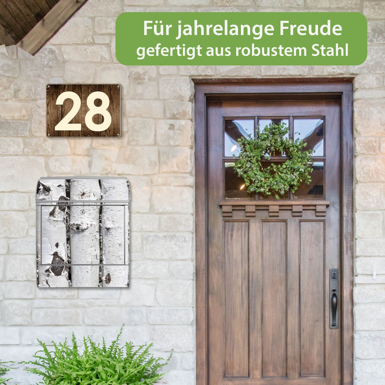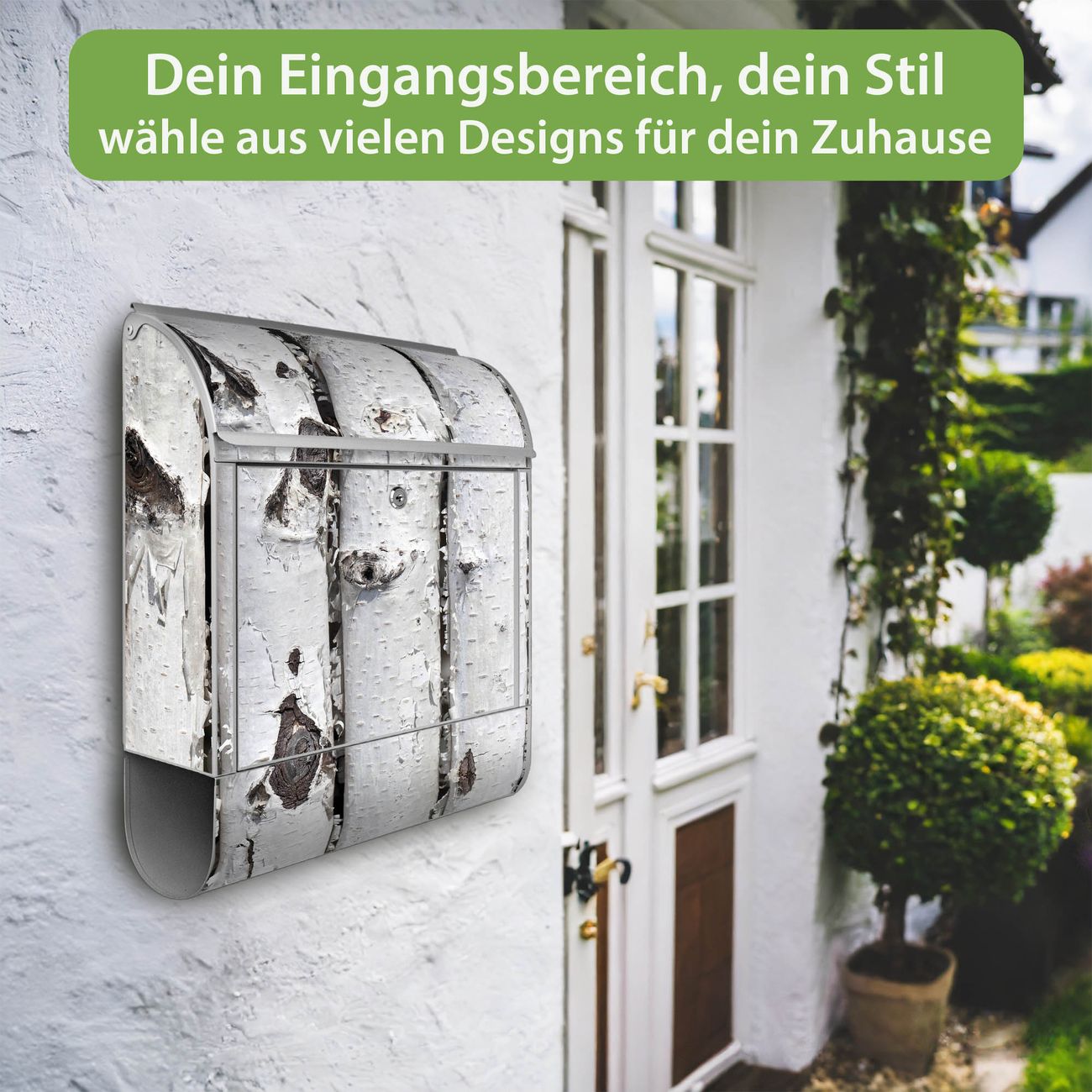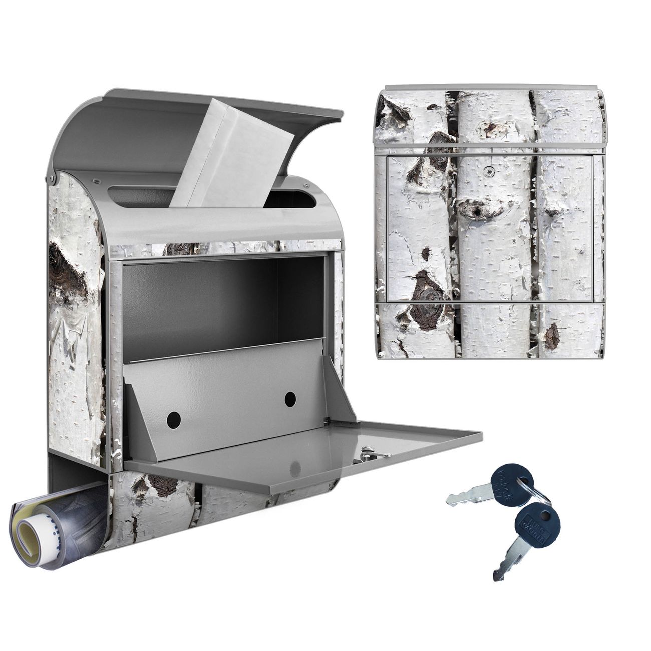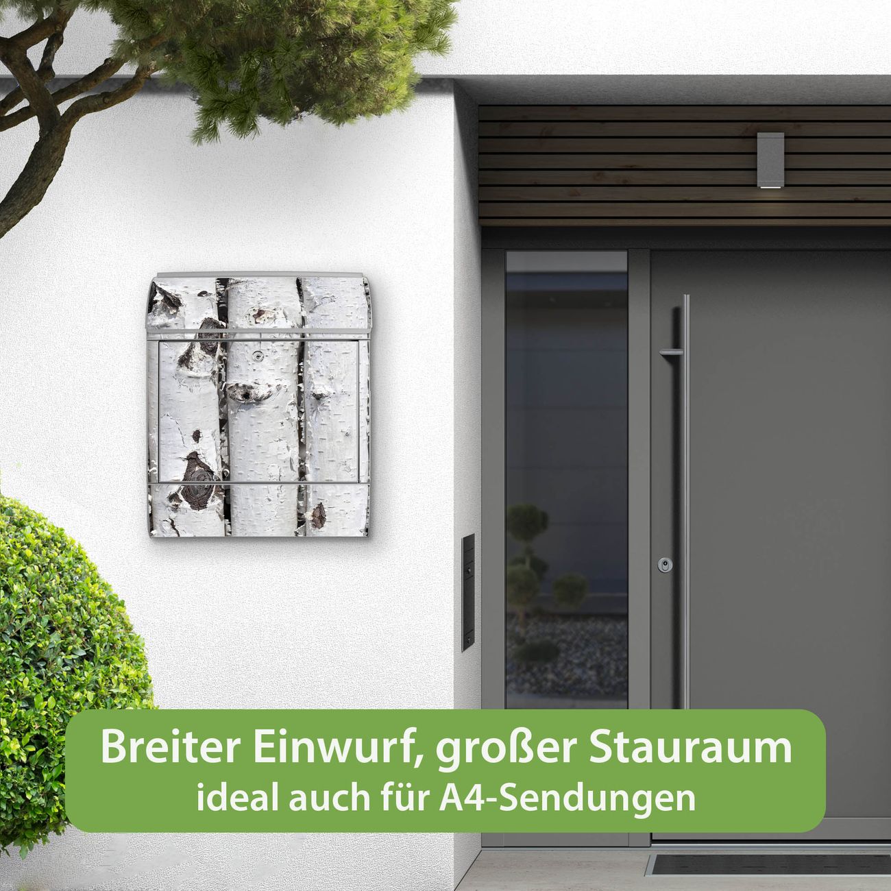 Großer Stahl Briefkasten Motiv Birkenrinde