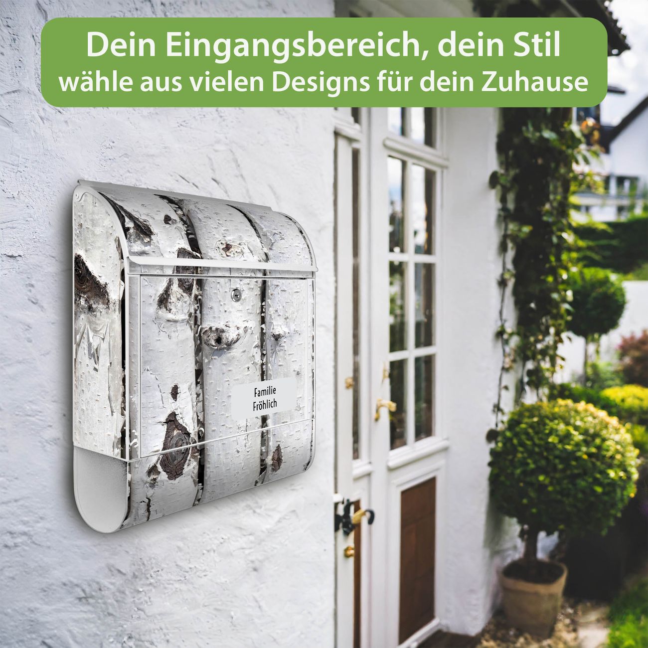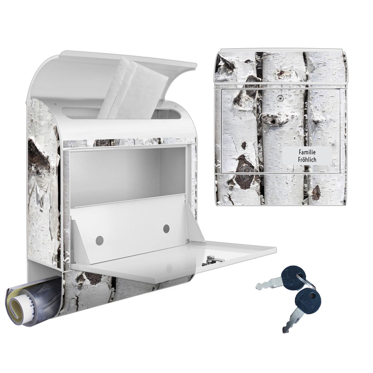 Großer Stahl Briefkasten Motiv Birkenrinde