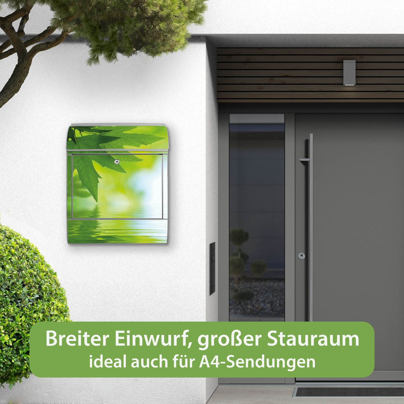 Großer Stahl Briefkasten Motiv Blättertraum