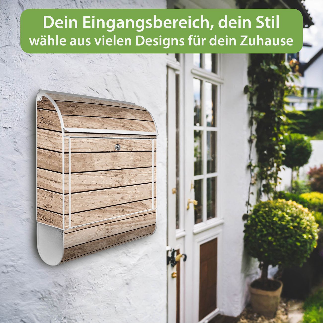 Großer Stahl Briefkasten Motiv Blasse Holzlatten