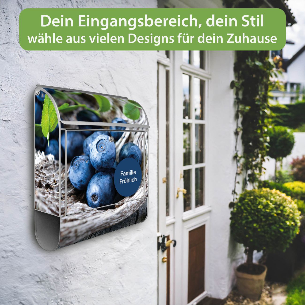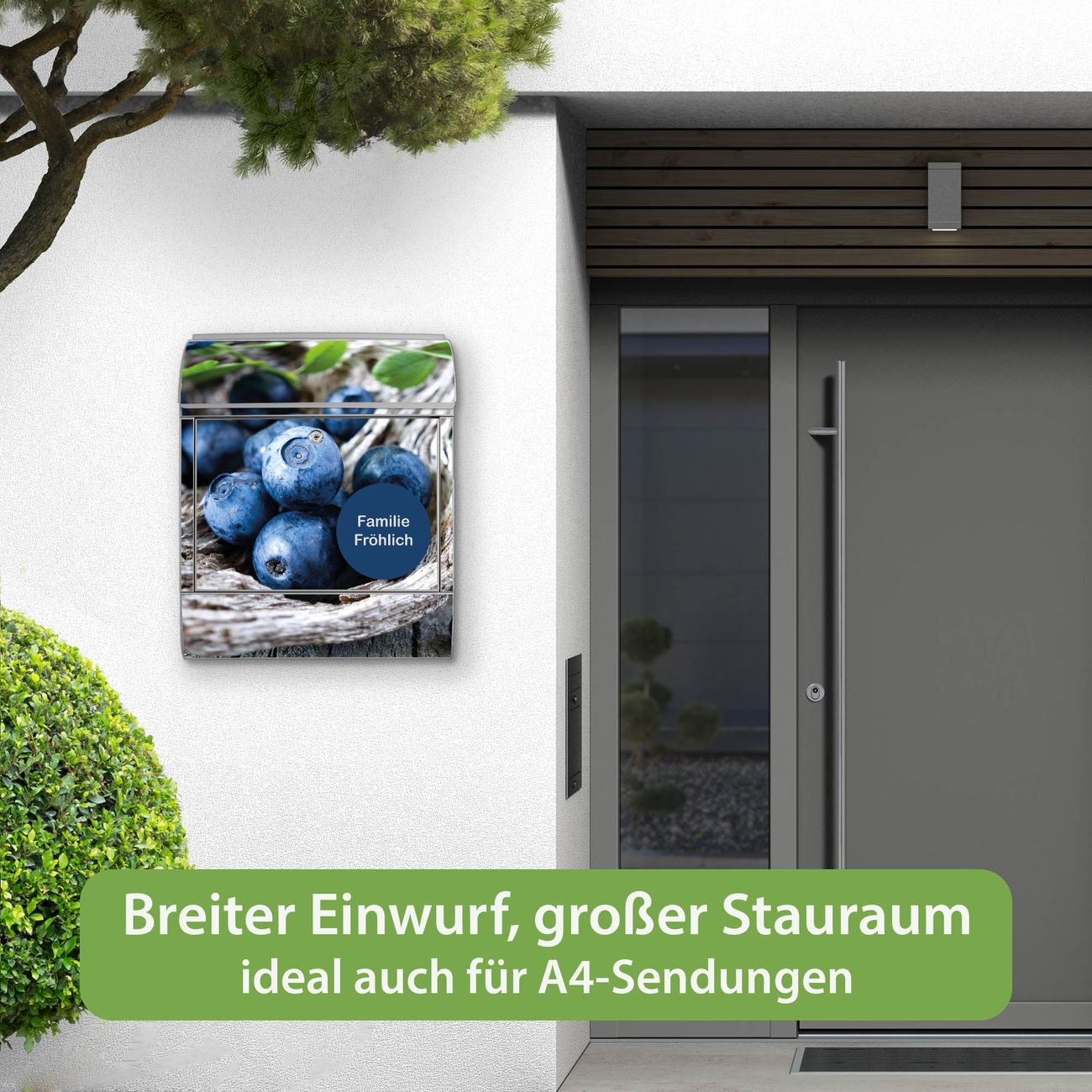 Großer Stahl Briefkasten Motiv Blaubeeren