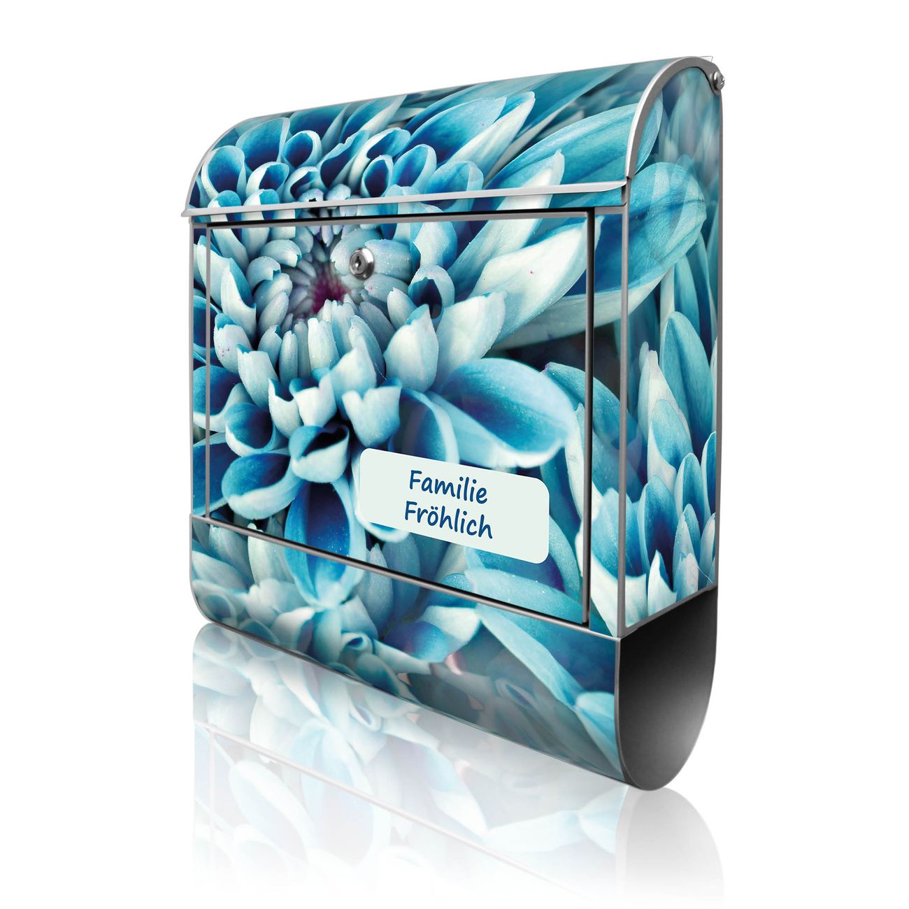 Großer Stahl Briefkasten Motiv Blaue Blüten