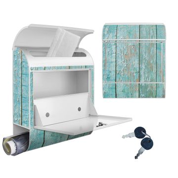 Großer Stahl Briefkasten Motiv Blaue Planken