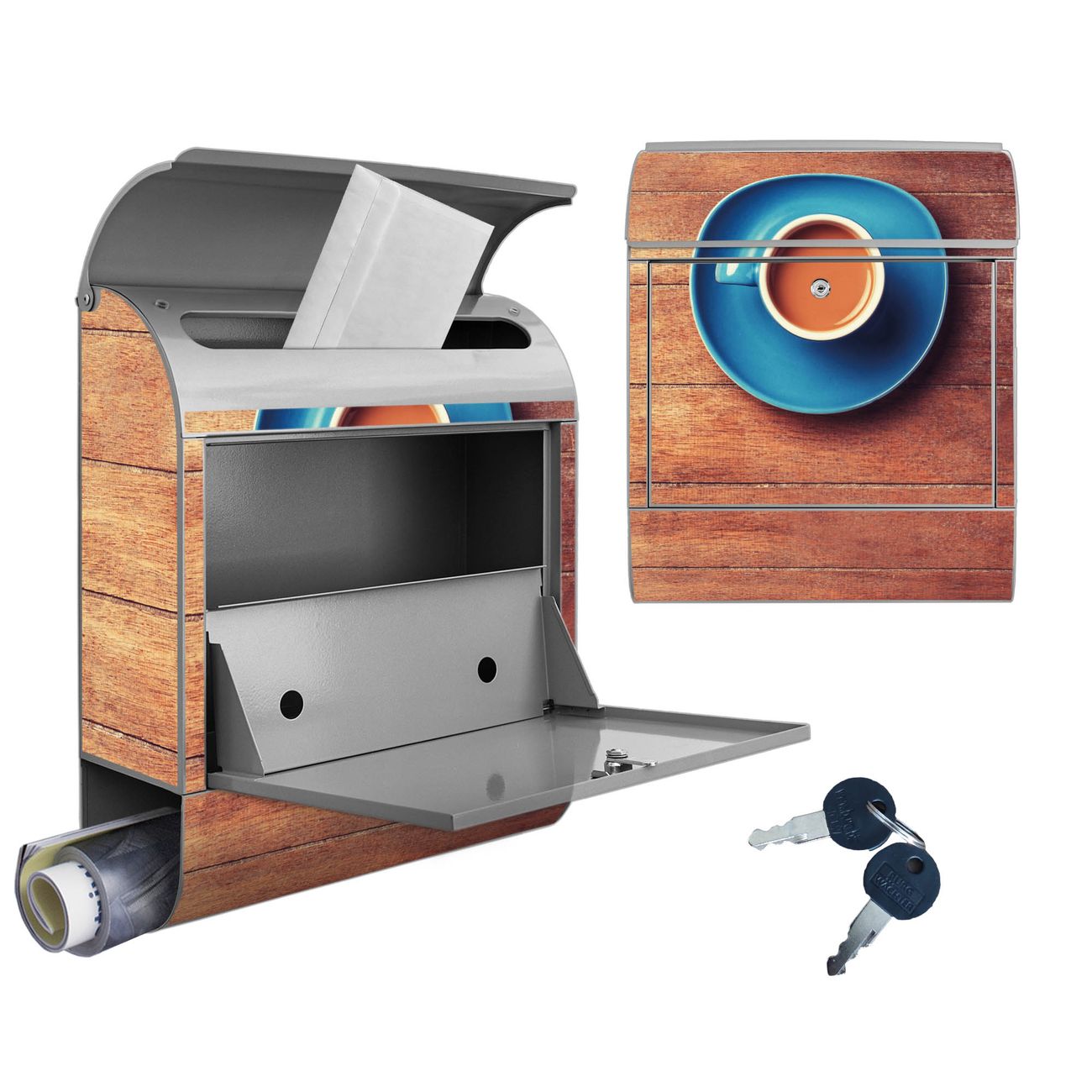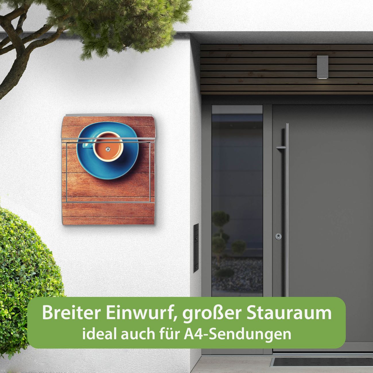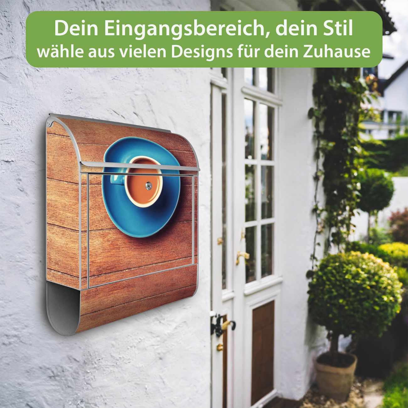 Großer Stahl Briefkasten Motiv Blaue Tasse