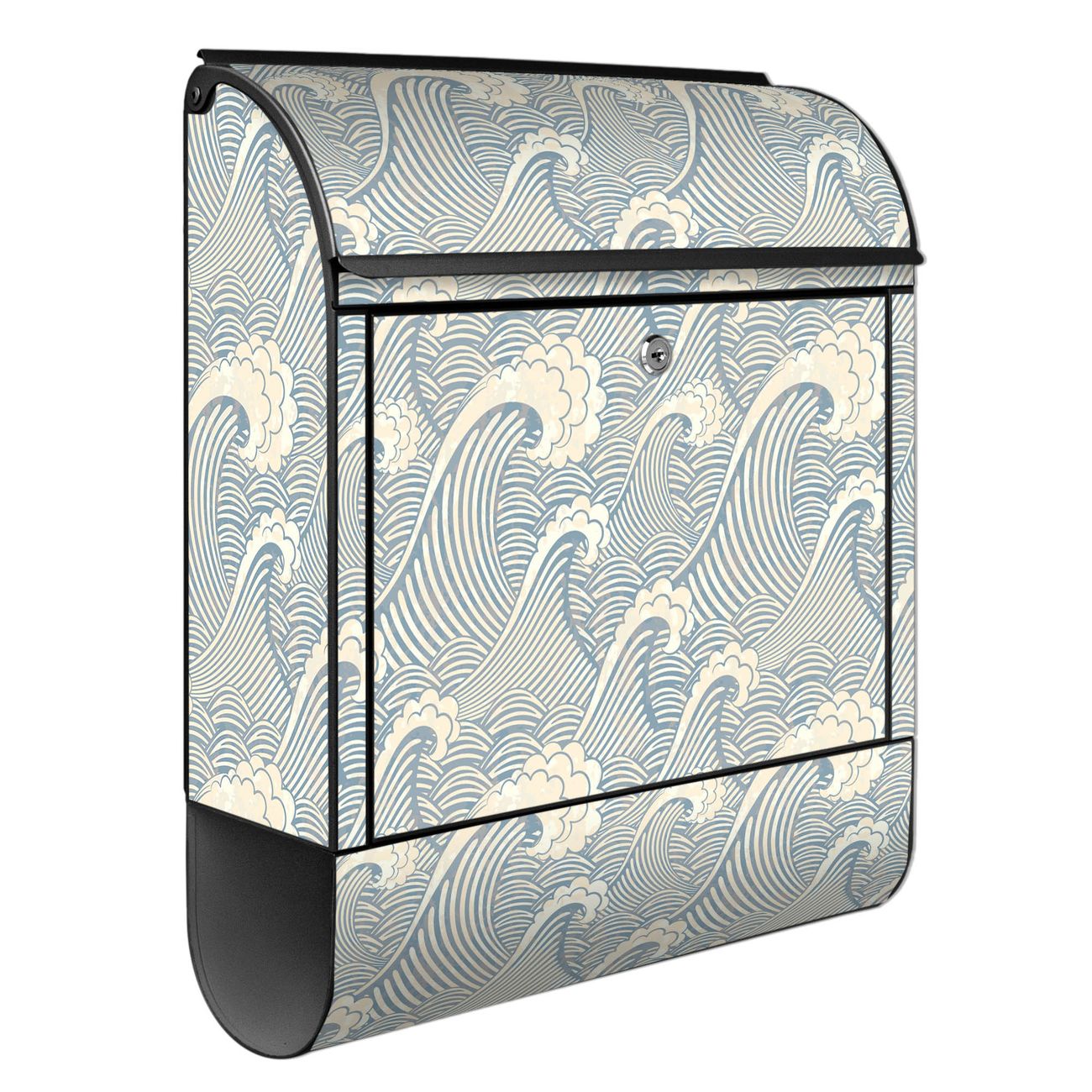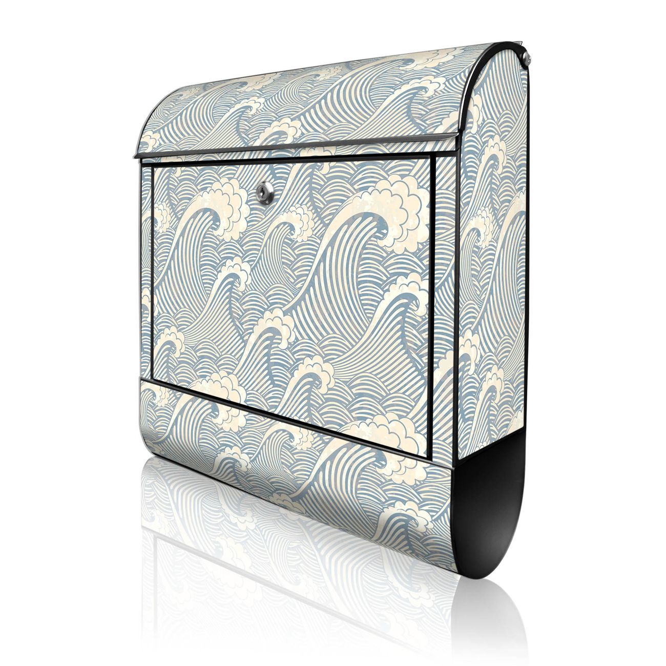 Großer Stahl Briefkasten Motiv Blaue Wellen