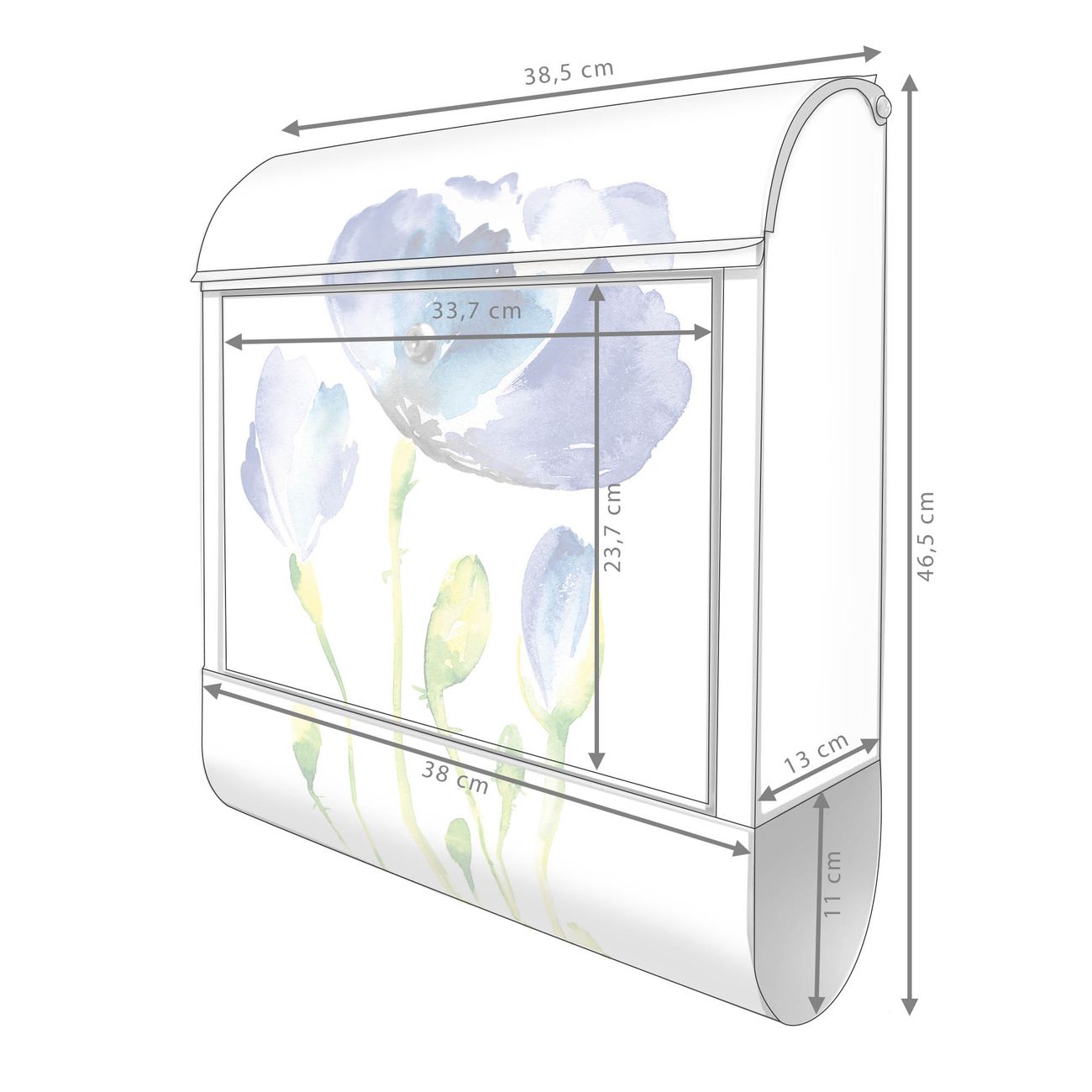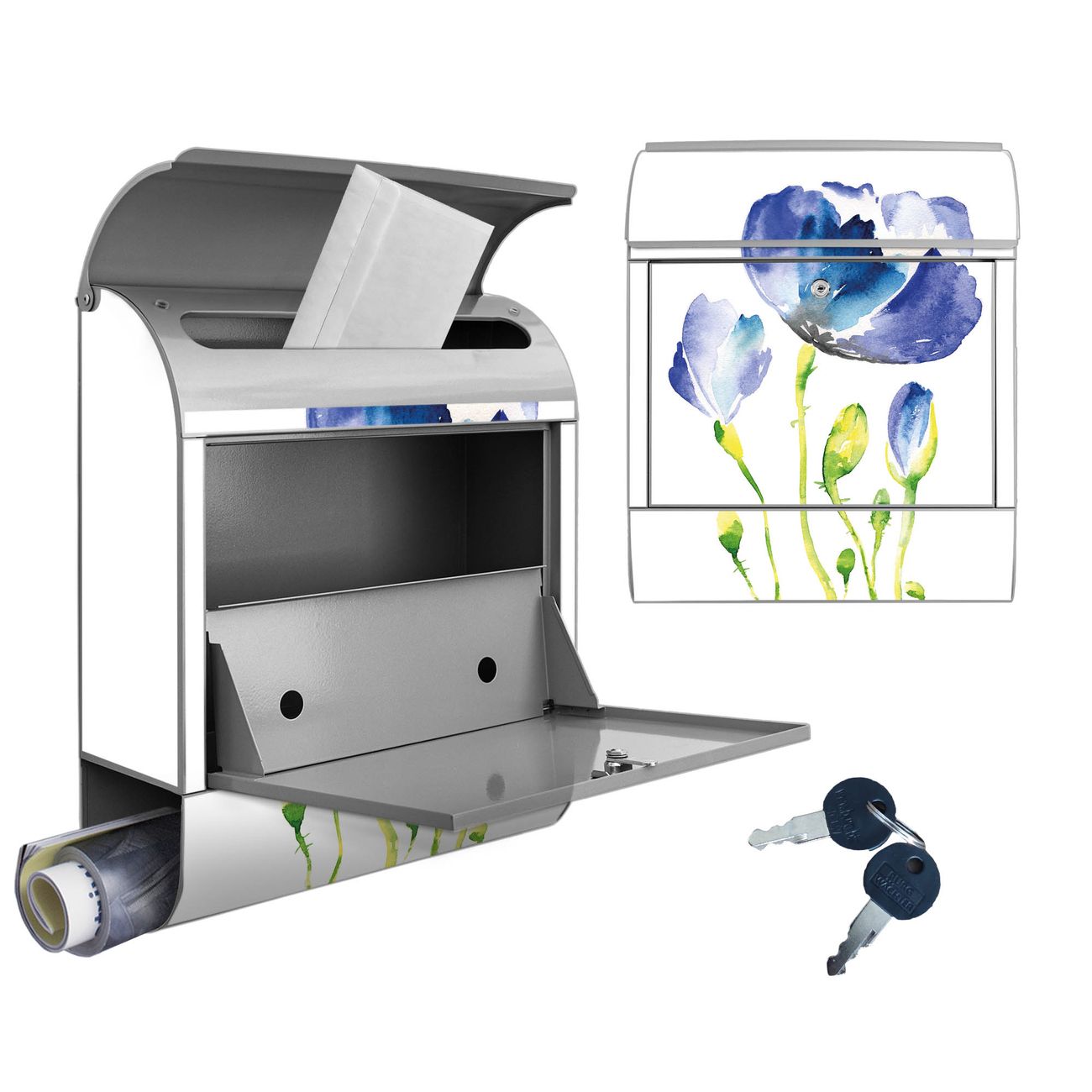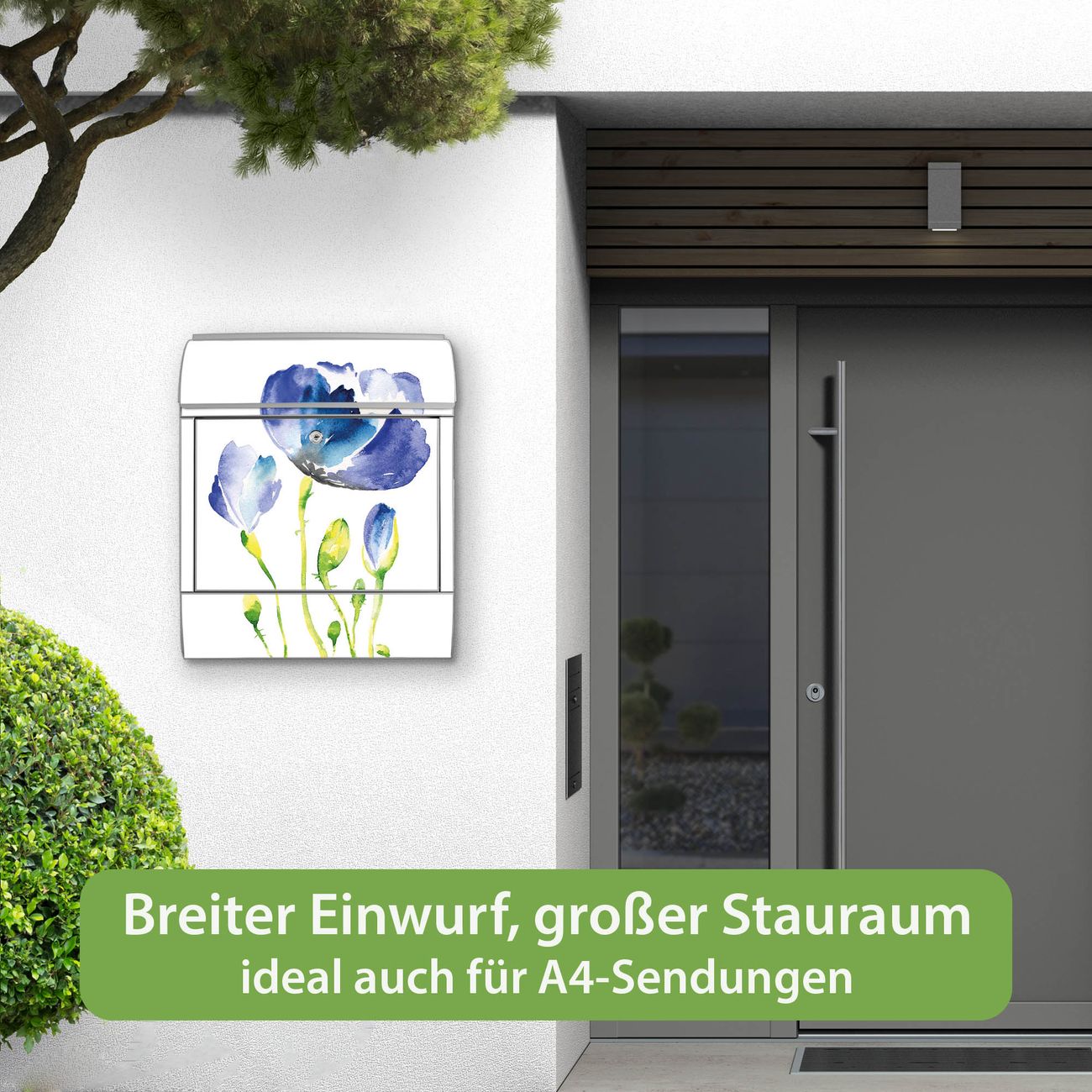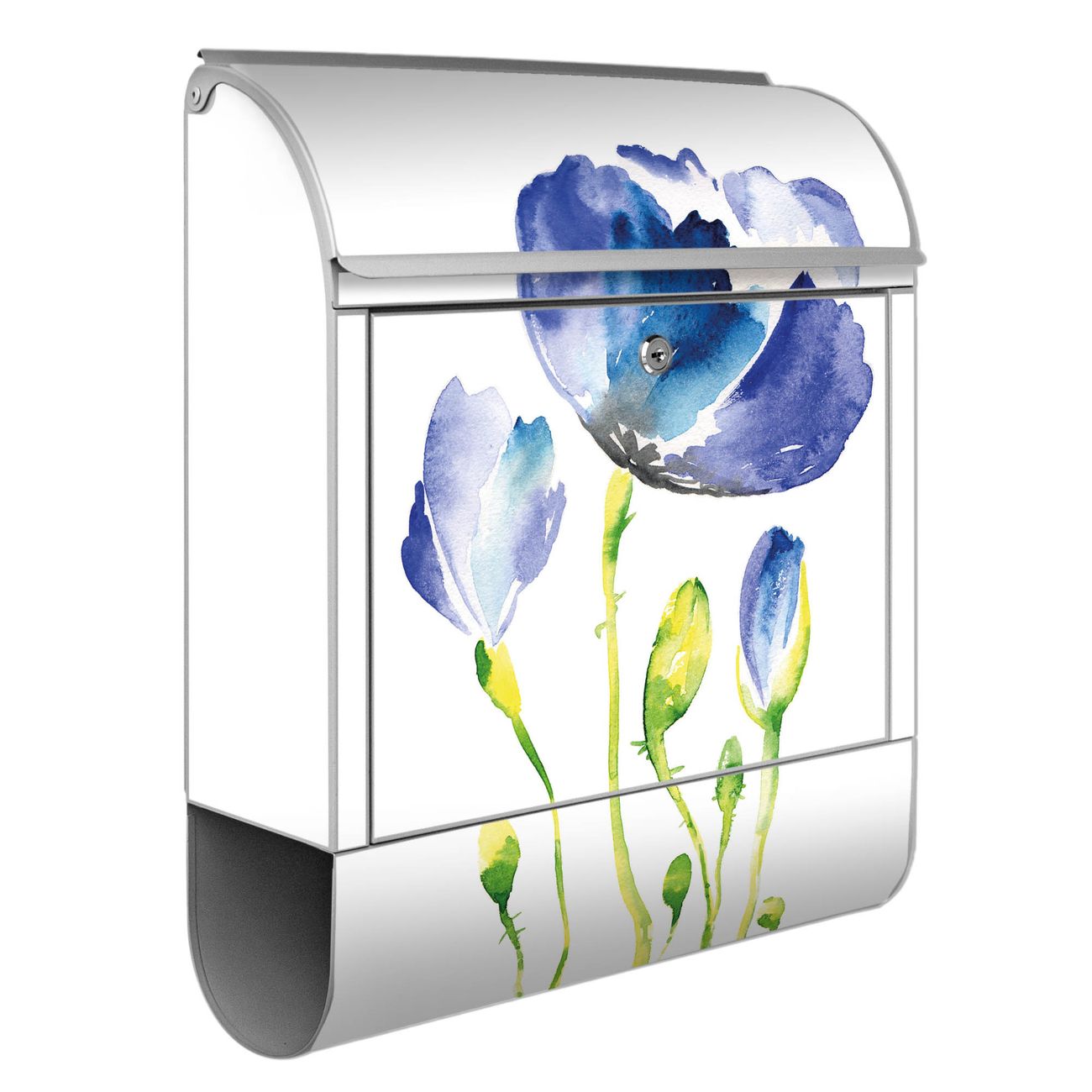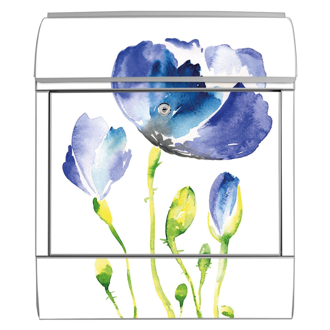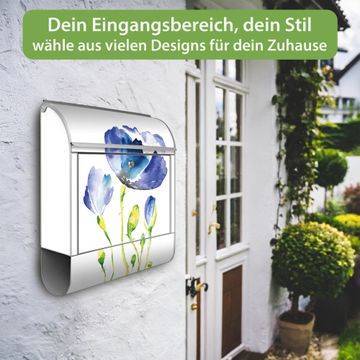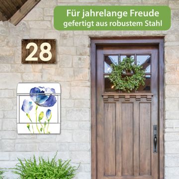 Großer Stahl Briefkasten Motiv Blauer Mohn