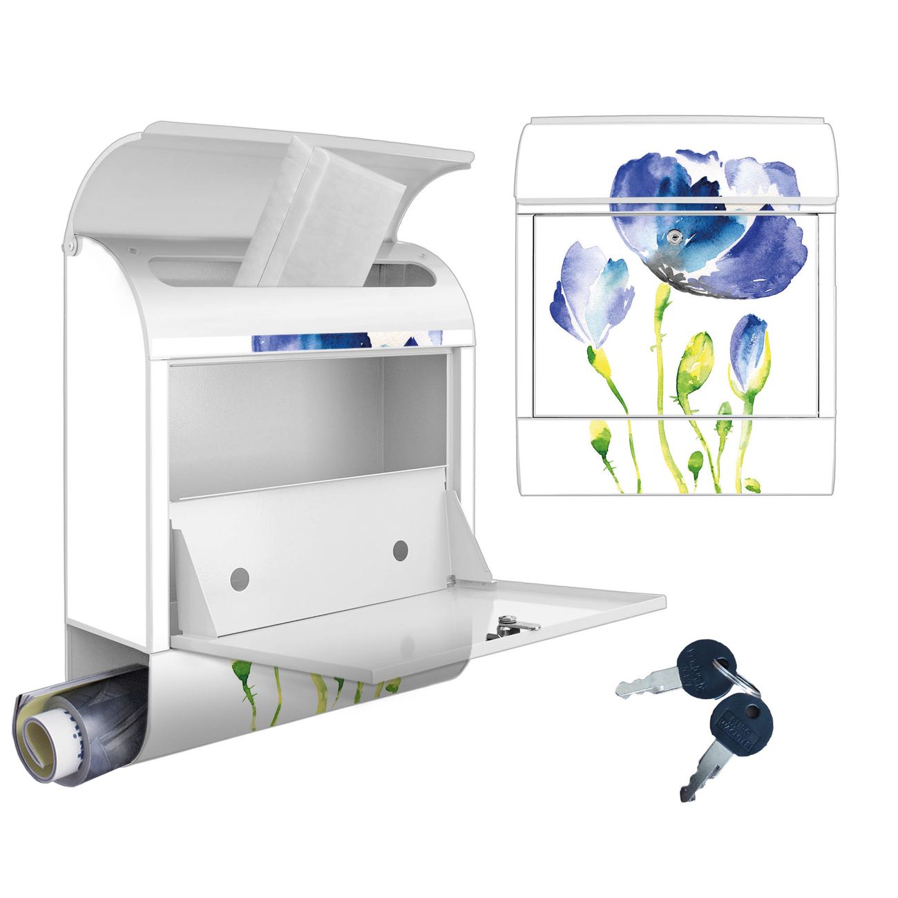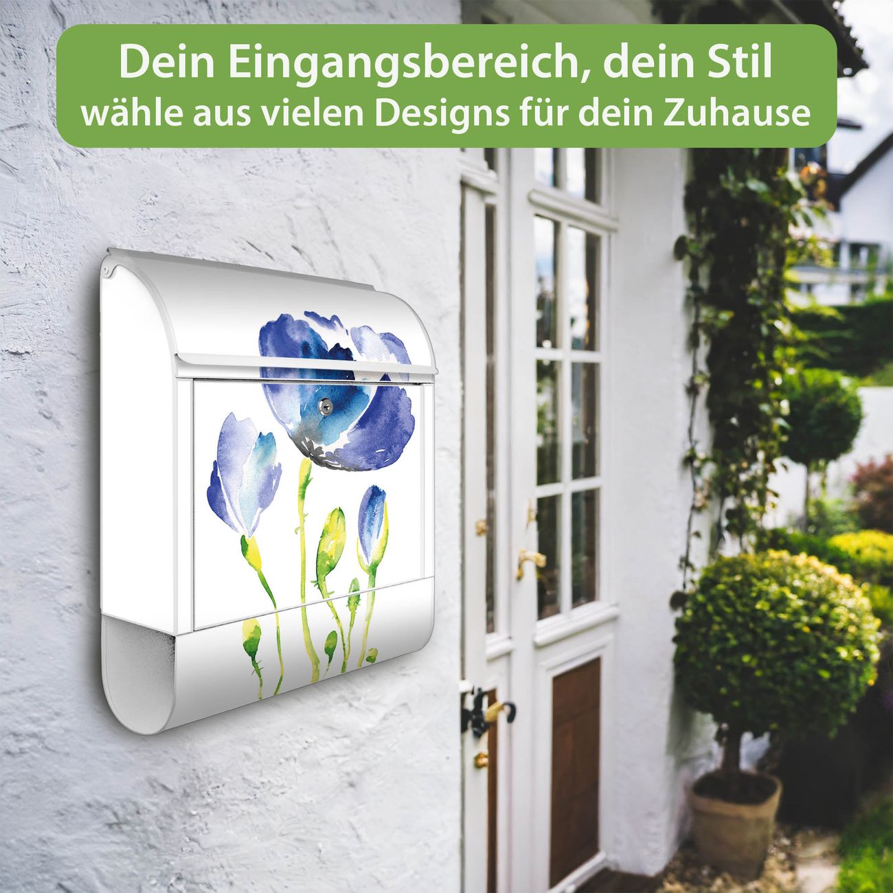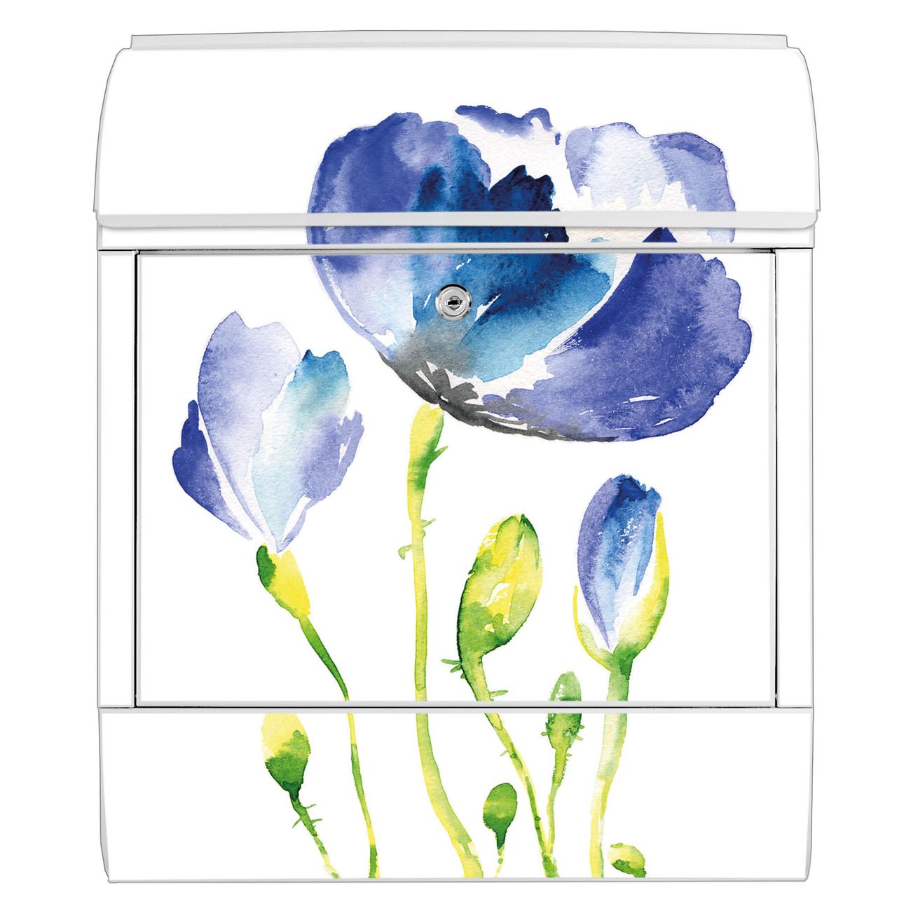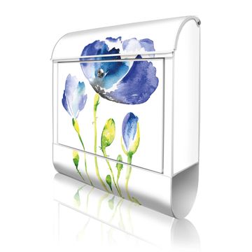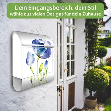Großer Stahl Briefkasten Motiv Blauer Mohn