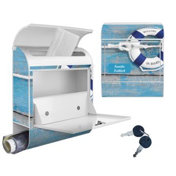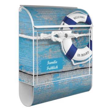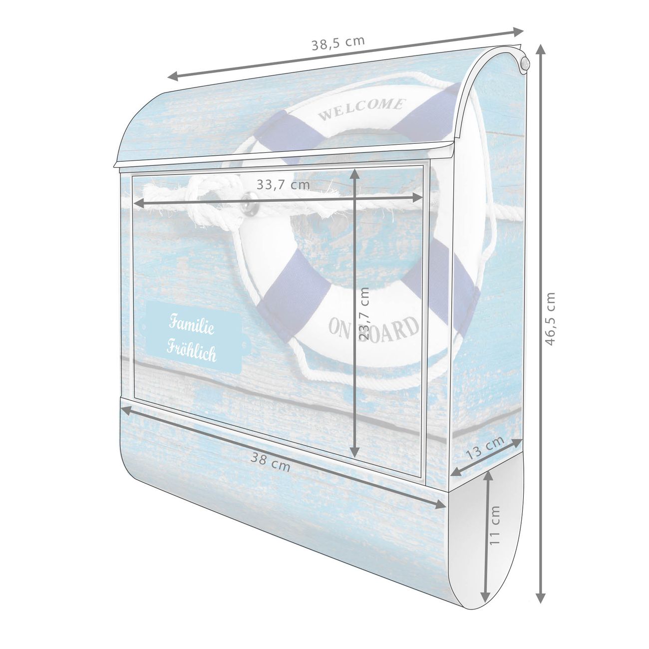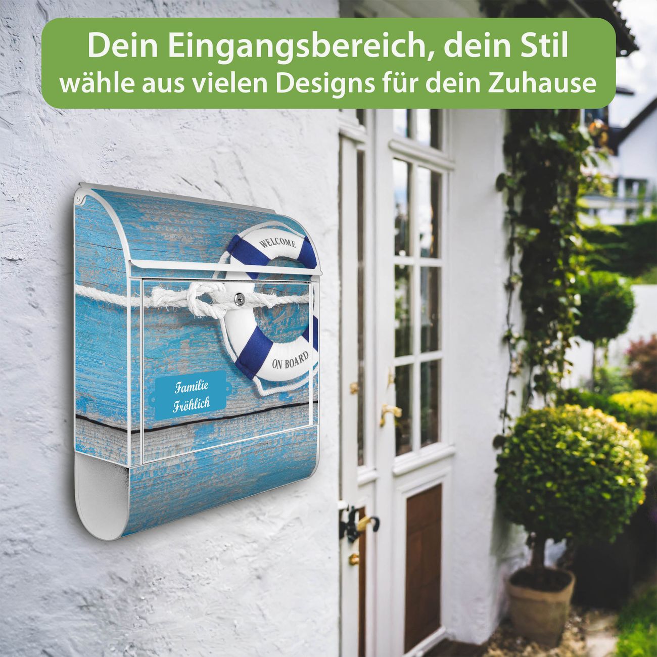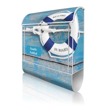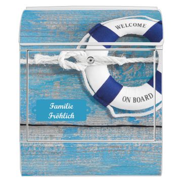 Großer Stahl Briefkasten Motiv Blauer Rettungsring