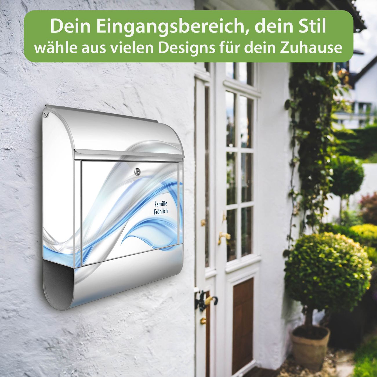Großer Stahl Briefkasten Motiv Blauer Schleier