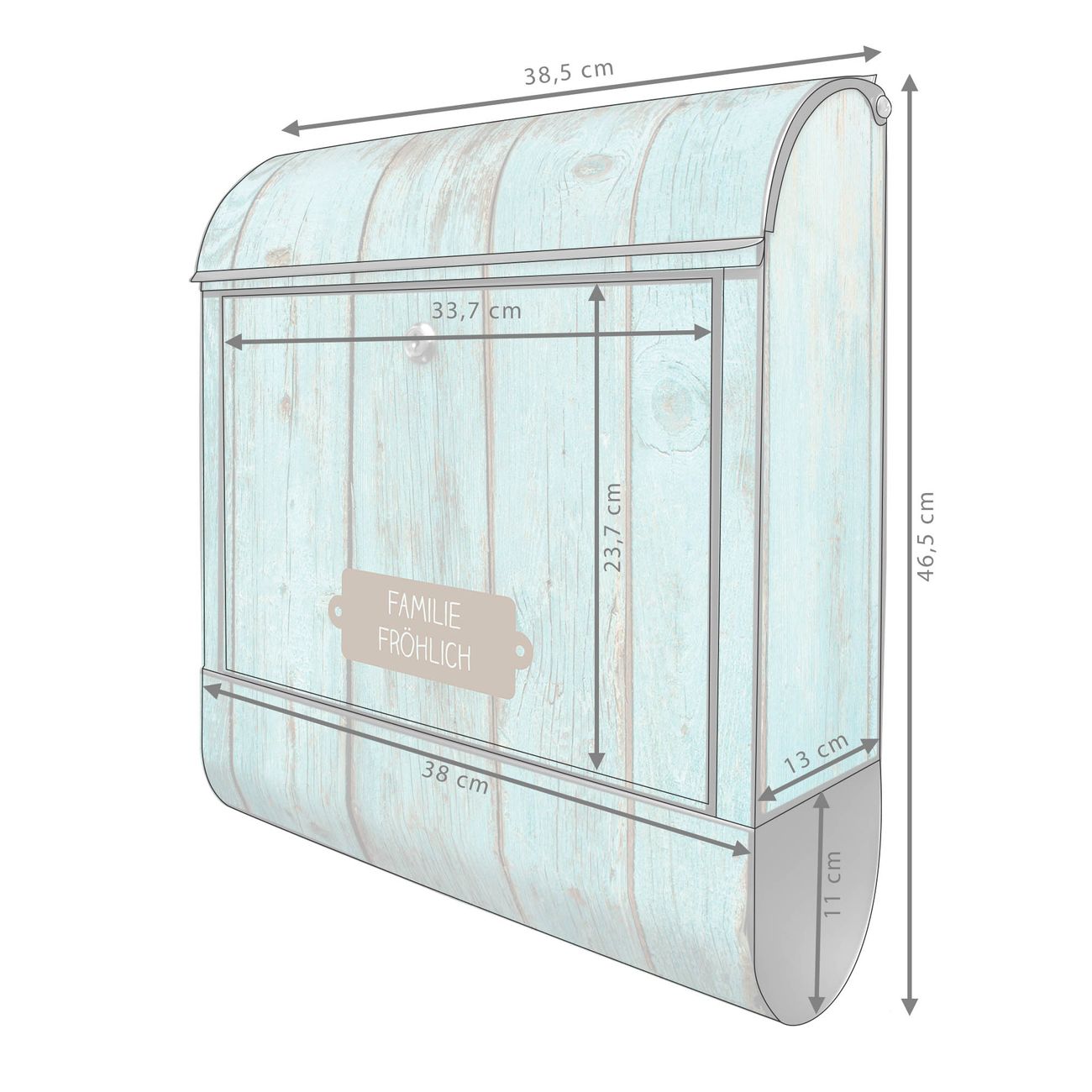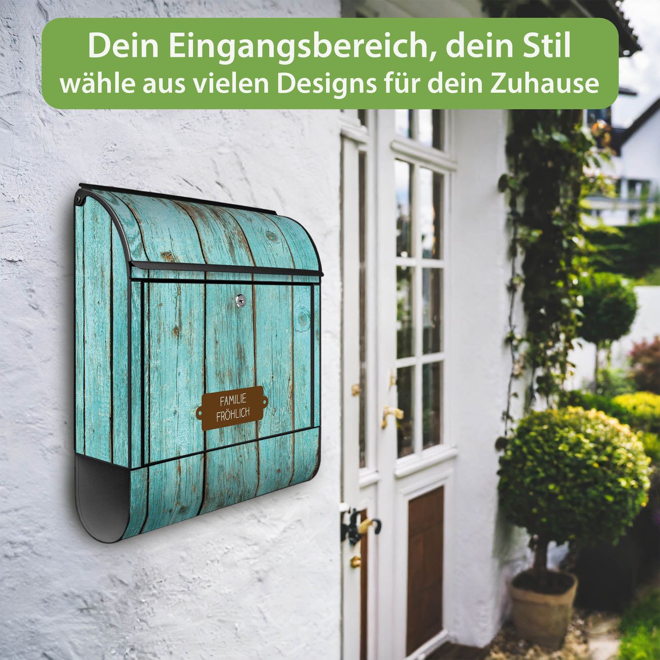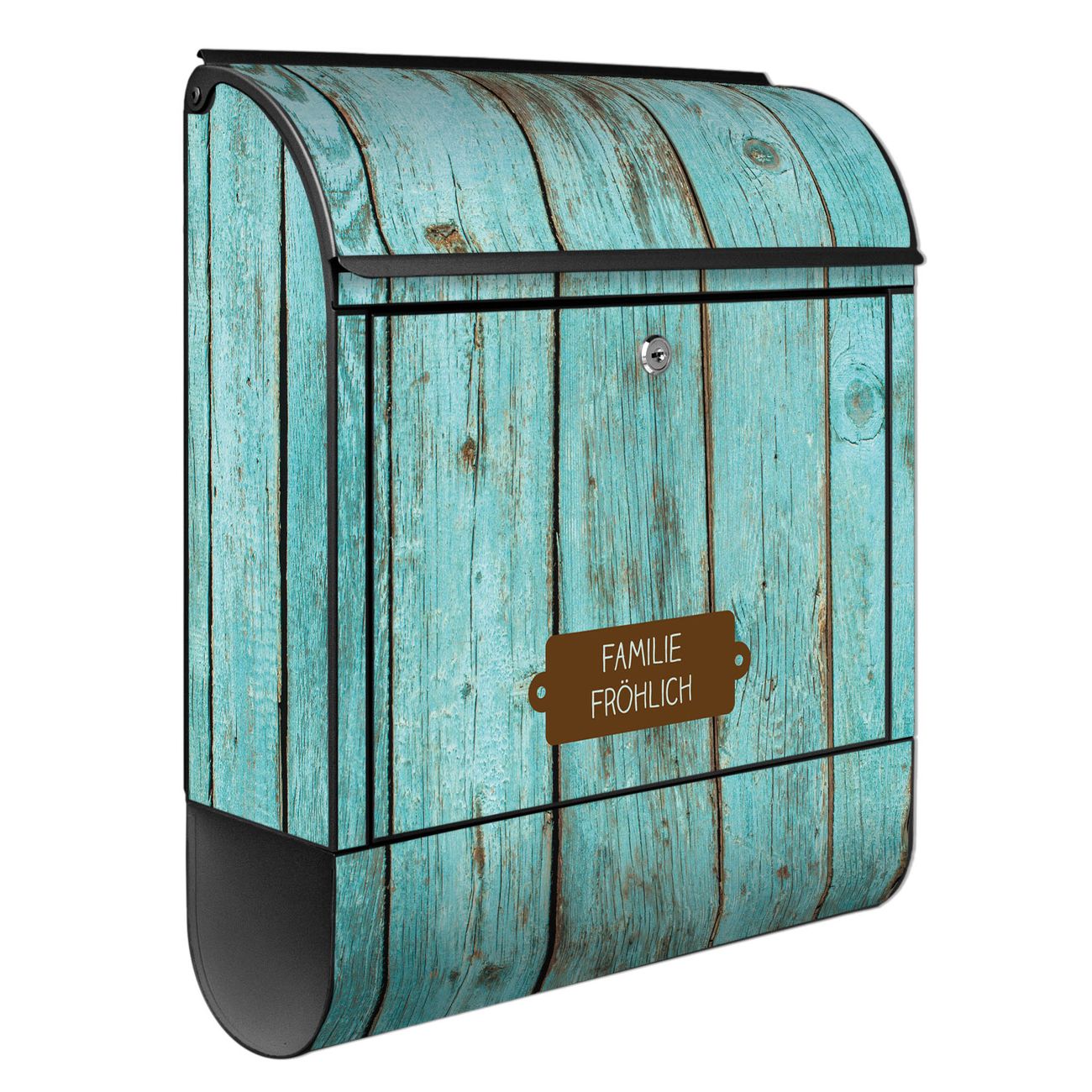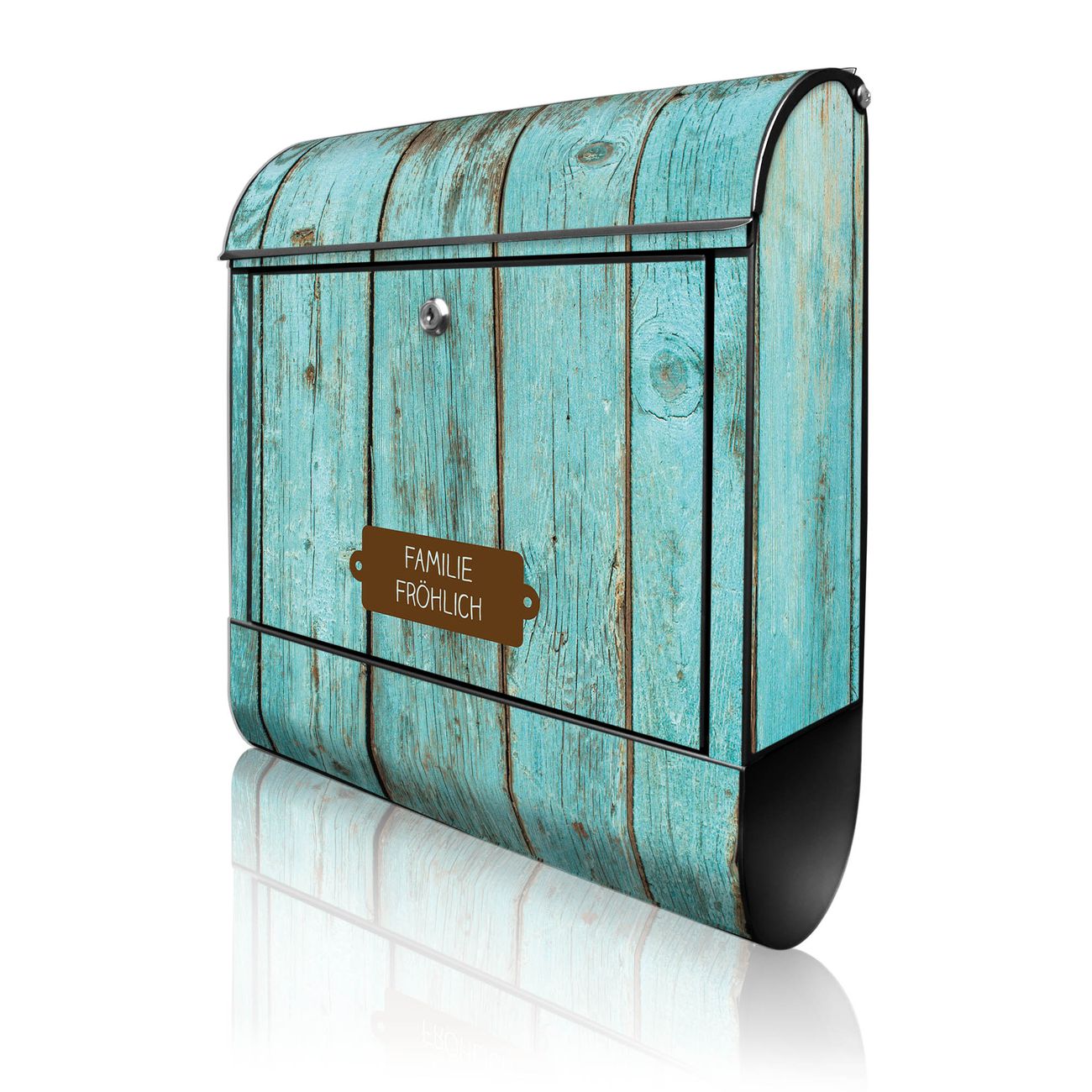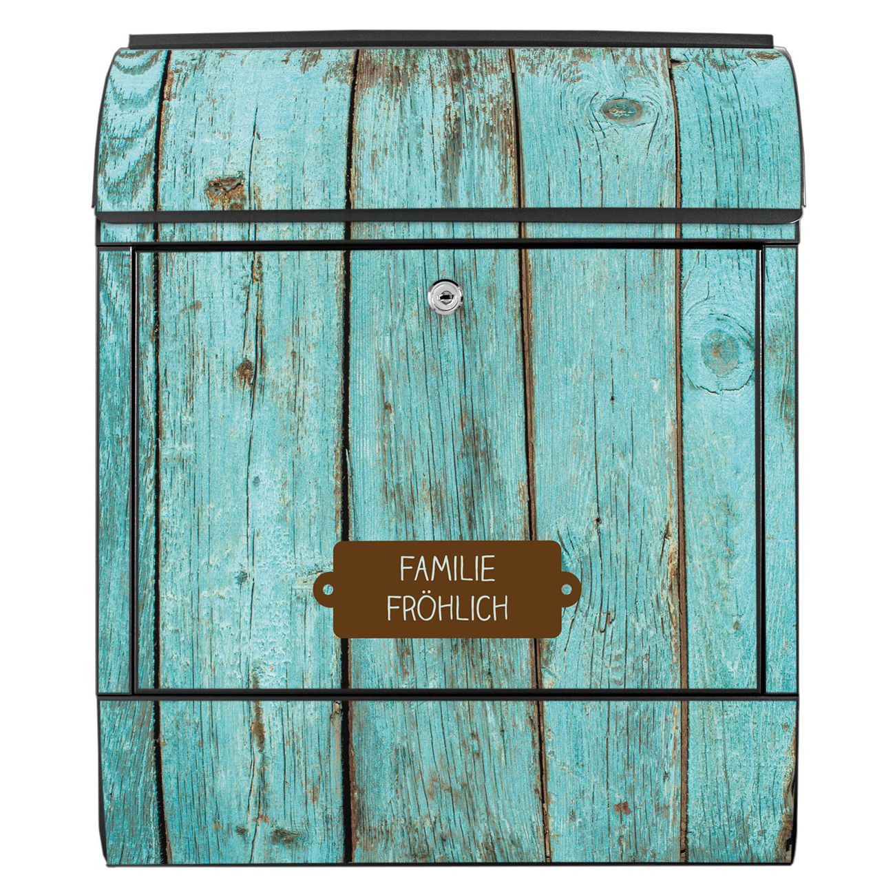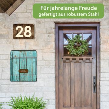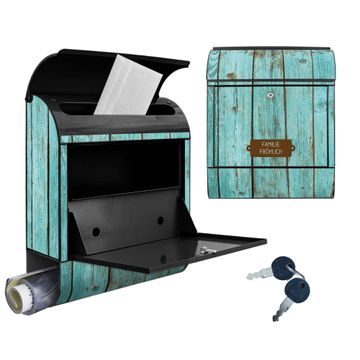 Großer Stahl Briefkasten Motiv Blaues Holz