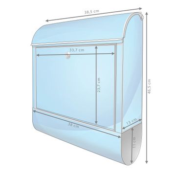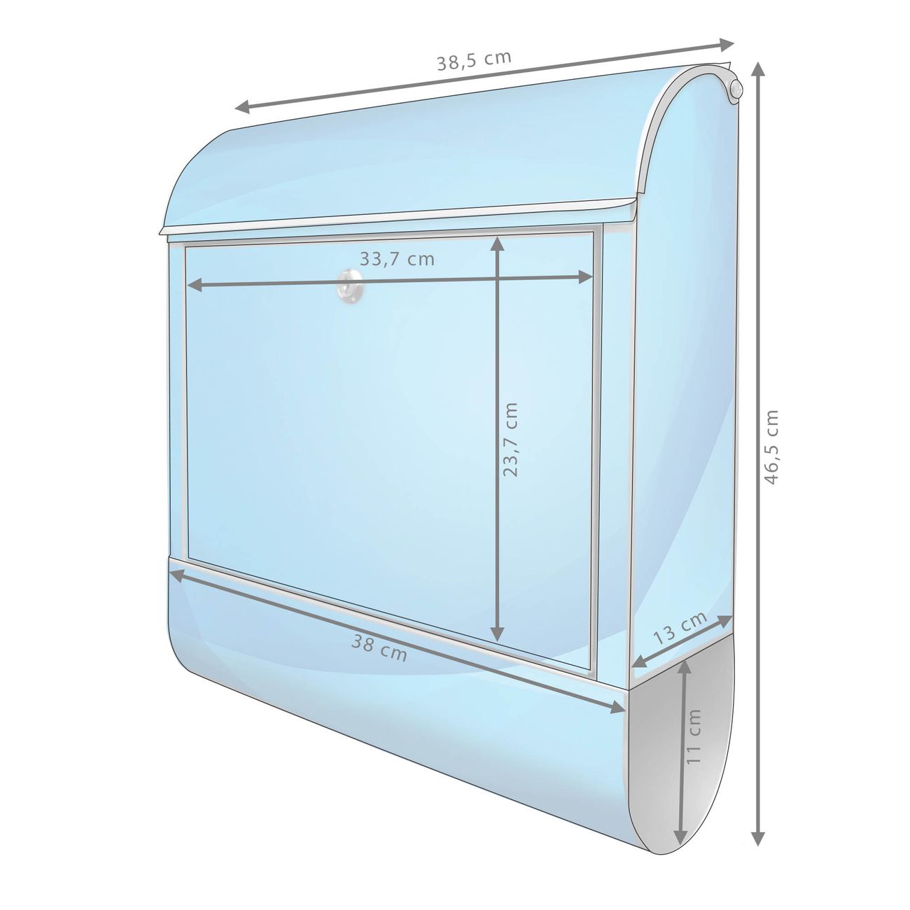 DESIGN: Der Postkasten mit Motiv Motiv Blaues Licht hat ein sehr ansprechendes und ausgefallenes Design, damit entlocken Sie Ihren Nachbarn und dem Postboten ein Lächeln. Heben Sie Sich von der tristen grauen Masse ab, ohne auf Funktionalität zu verzichten. DETAILS: Der Postkasten besteht aus pulverbeschichtetem Stahl. Er ist 38x46x12,5cm groß. Das Motiv besteht aus einer wetter- und UV-resistenten Folie, die mit einem Schutzlaminat überzogen ist, sodass der Briefkasten zusätzlich vor Kratzern geschützt ist. Der Briefkasten wird mit Montagematerial, zusätzlich zwei Schlüssel sowie einer Bohrschablone geliefert. NUTZEN: Sie können diesen Briefkasten sowohl als Wandbriefkasten montieren oder einen passenden Ständer kaufen und als Standbriefkasten einbetonieren. Die Größe bietet genügend Platz für Sendungen aller Art, der Einwurf fasst auch größere A4 Sendungen. BANJADO: Ihr Briefkasten wird in Sachsen in einer kleinen Manufaktur von Hand veredelt. Die Motivfolie ist lösungsmittelfrei und schutzlaminiert für einen langen Halt. Wir legen großen Wert auf die Verbindung von Funktionalität und Design. Sie erhalten Handarbeit aus Sachsen.