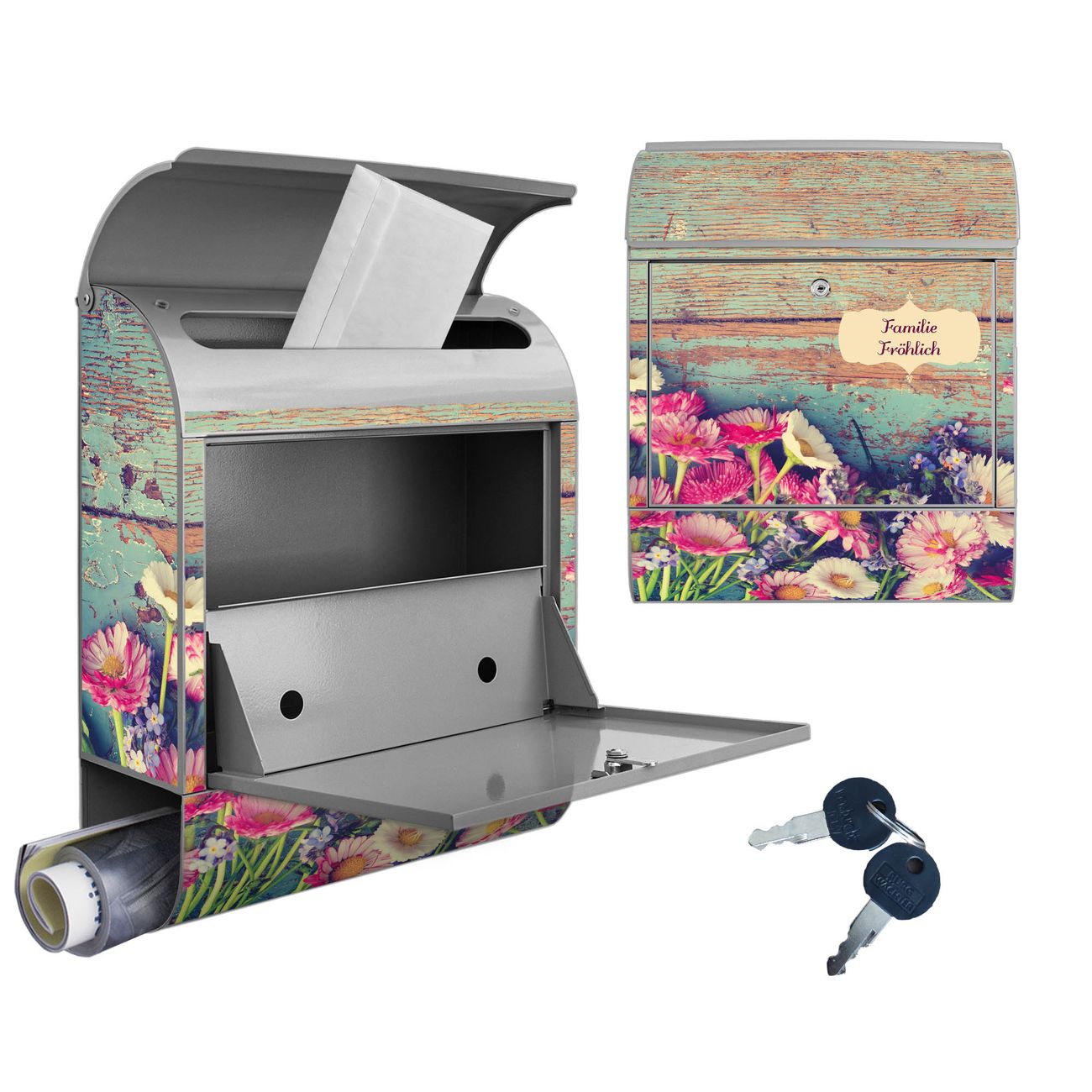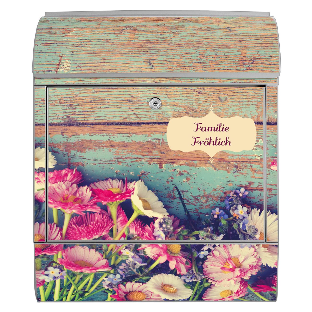 Großer Stahl Briefkasten Motiv Blumenpfücken