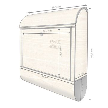 DESIGN: Der Postkasten mit Motiv Motiv Bretter hat ein sehr ansprechendes und ausgefallenes Design, damit entlocken Sie Ihren Nachbarn und dem Postboten ein Lächeln. Heben Sie Sich von der tristen grauen Masse ab, ohne auf Funktionalität zu verzichten. DETAILS: Der Postkasten besteht aus pulverbeschichtetem Stahl. Er ist 38x46x12,5cm groß. Das Motiv besteht aus einer wetter- und UV-resistenten Folie, die mit einem Schutzlaminat überzogen ist, sodass der Briefkasten zusätzlich vor Kratzern geschützt ist. Der Briefkasten wird mit Montagematerial, zusätzlich zwei Schlüssel sowie einer Bohrschablone geliefert. NUTZEN: Sie können diesen Briefkasten sowohl als Wandbriefkasten montieren oder einen passenden Ständer kaufen und als Standbriefkasten einbetonieren. Die Größe bietet genügend Platz für Sendungen aller Art, der Einwurf fasst auch größere A4 Sendungen. BANJADO: Ihr Briefkasten wird in Sachsen in einer kleinen Manufaktur von Hand veredelt. Die Motivfolie ist lösungsmittelfrei und schutzlaminiert für einen langen Halt. Wir legen großen Wert auf die Verbindung von Funktionalität und Design. Sie erhalten Handarbeit aus Sachsen.