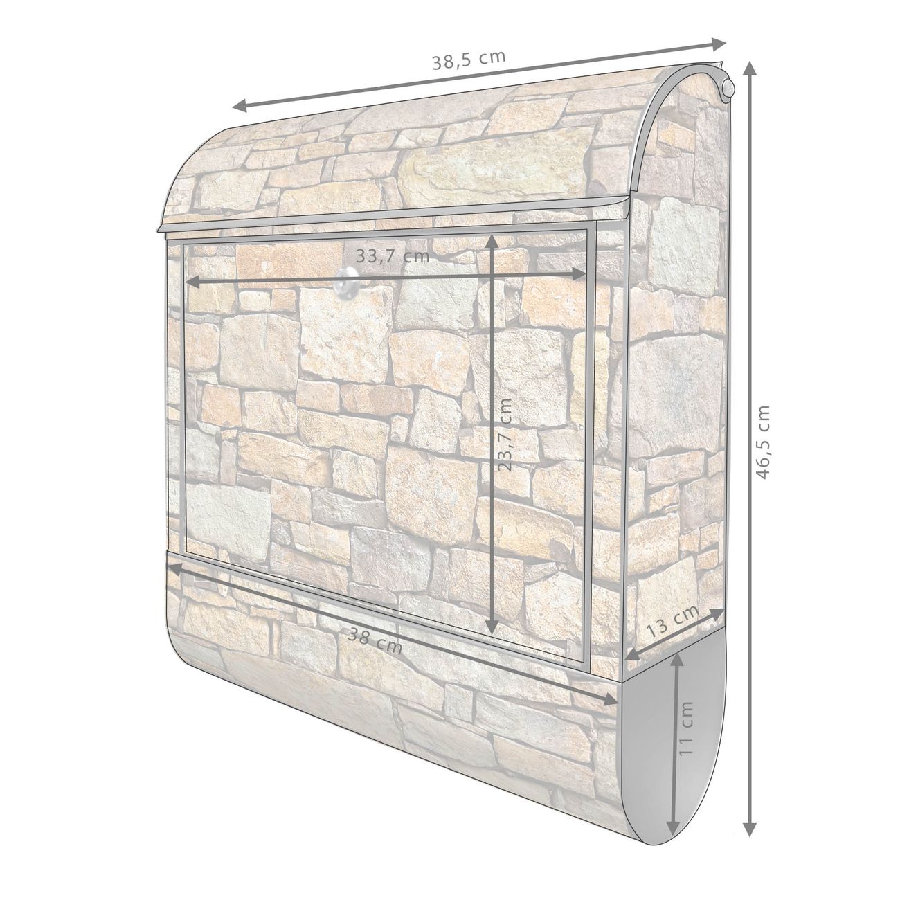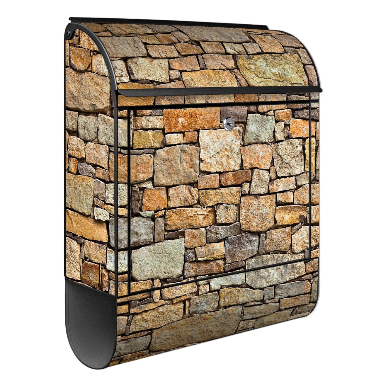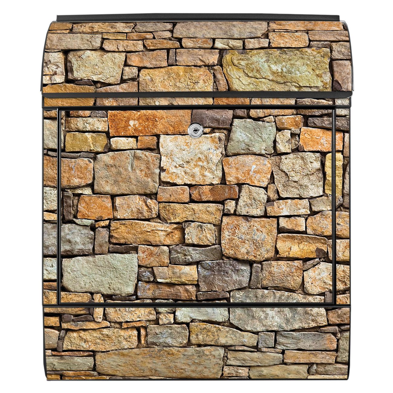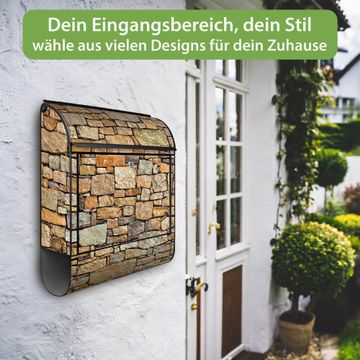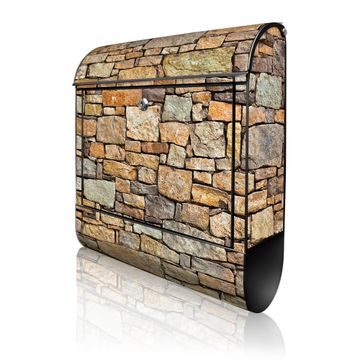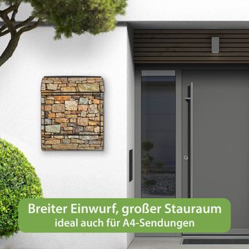 Großer Stahl Briefkasten Motiv Bruchsteinmauer
