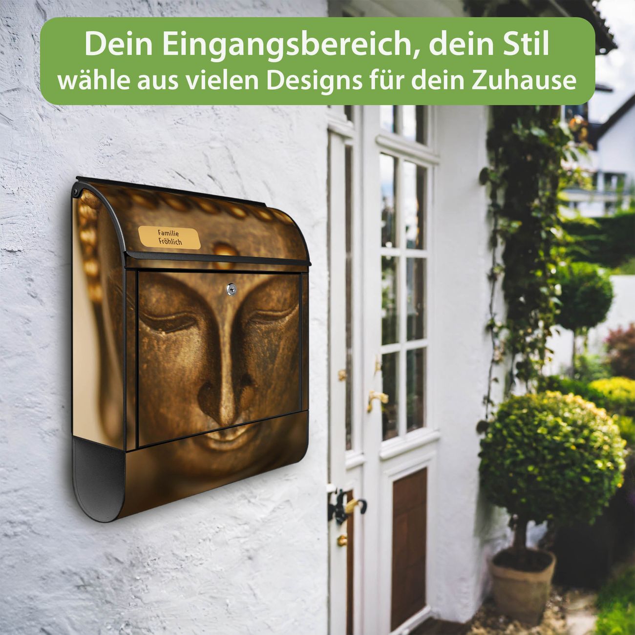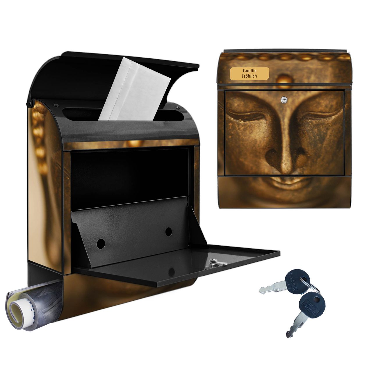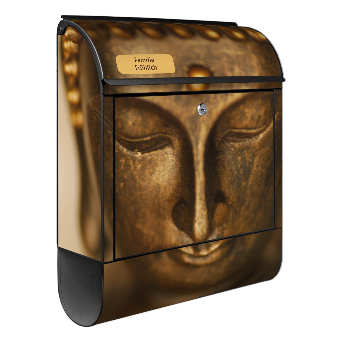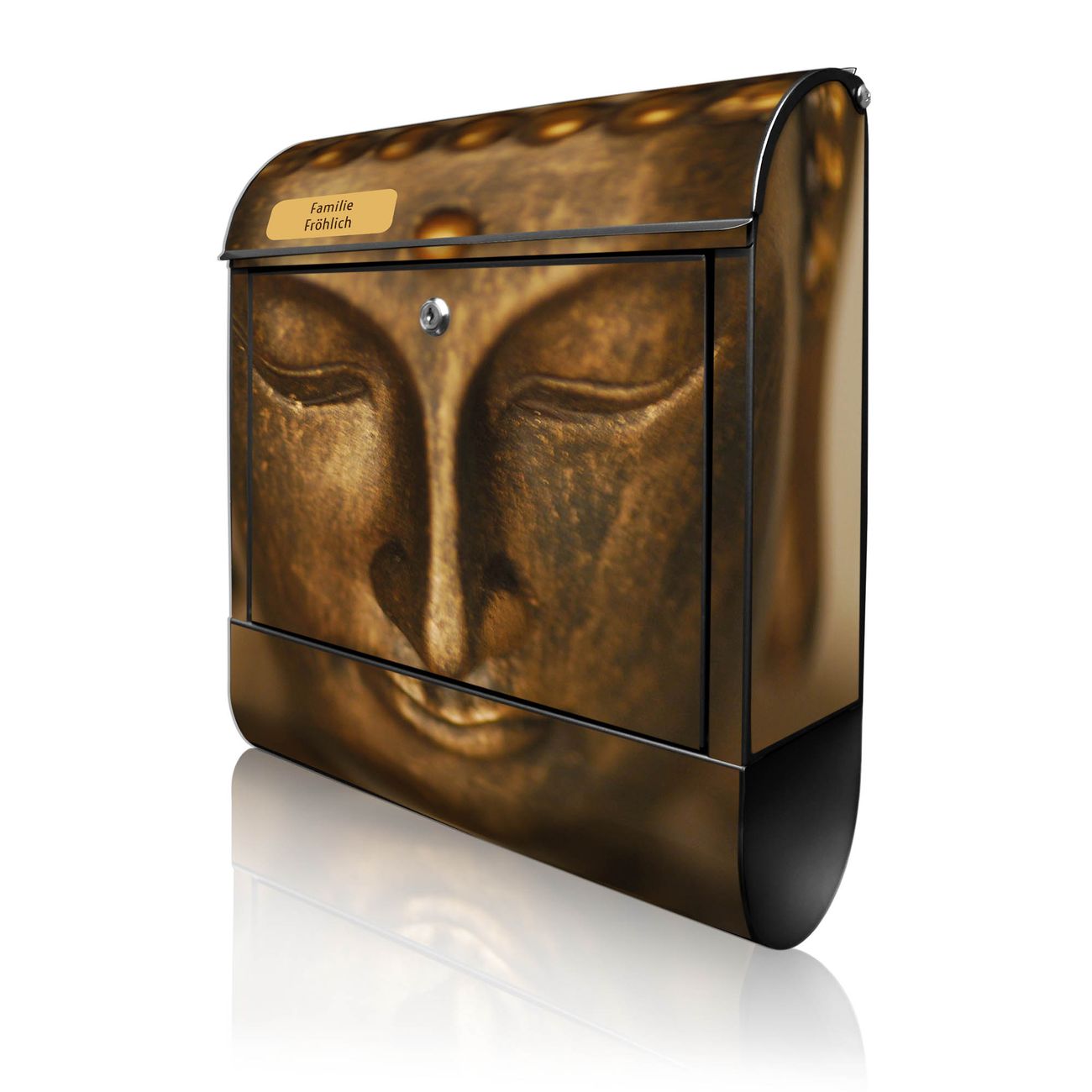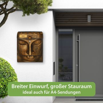 Großer Stahl Briefkasten Motiv Buddha Gold