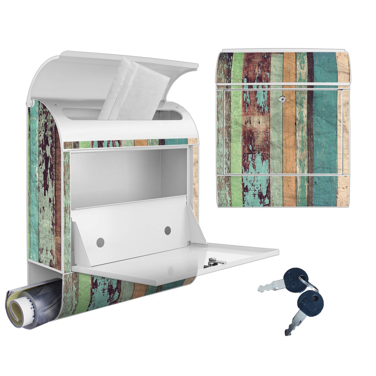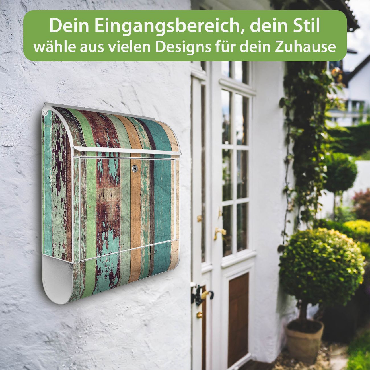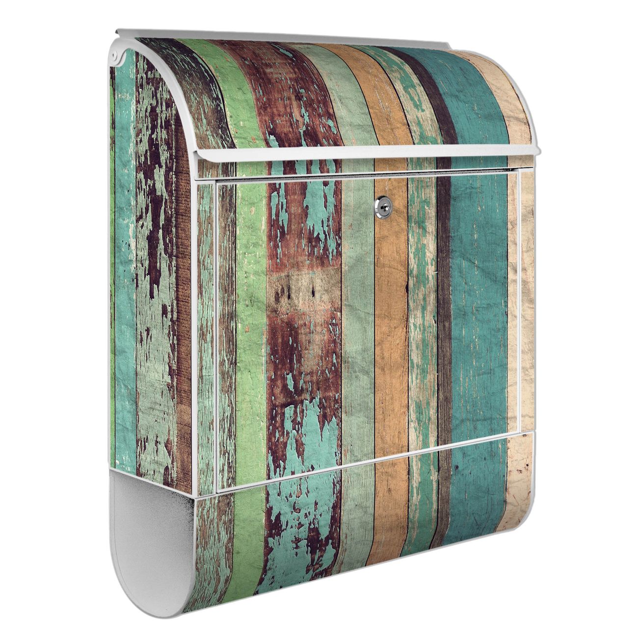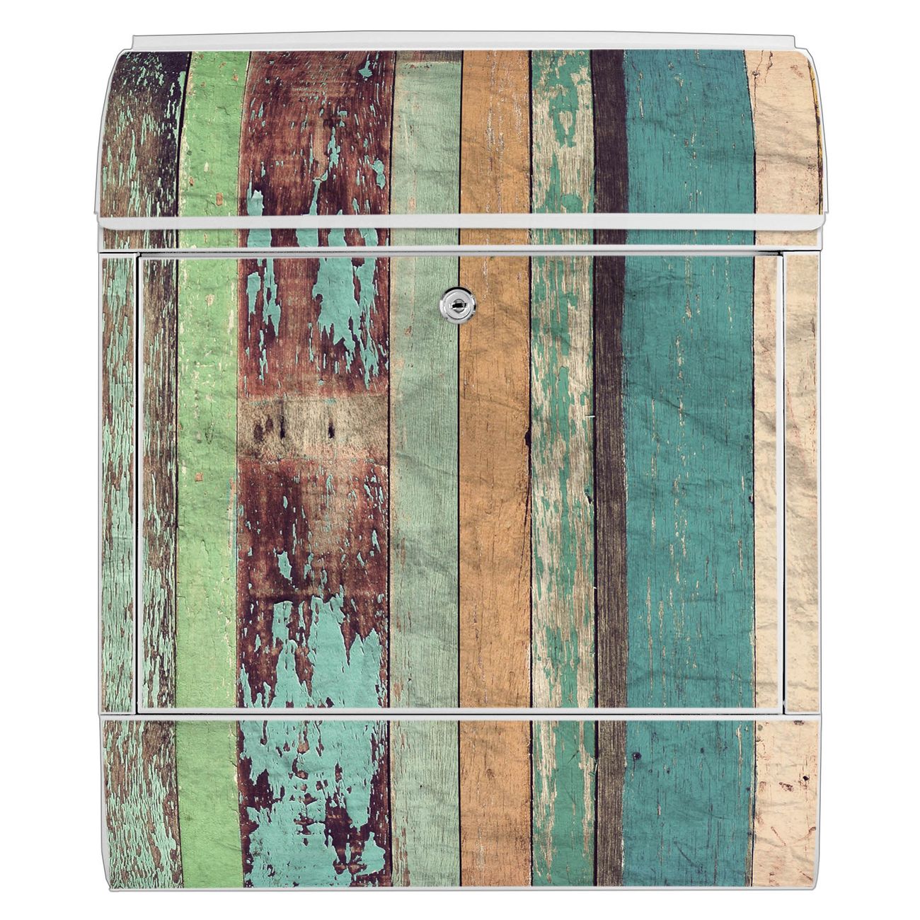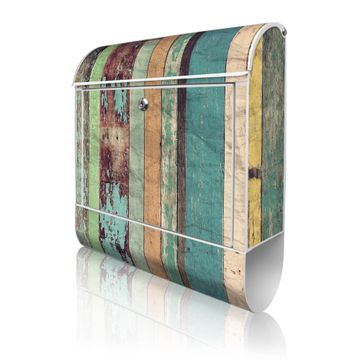 Großer Stahl Briefkasten Motiv Bunte Bretterwand