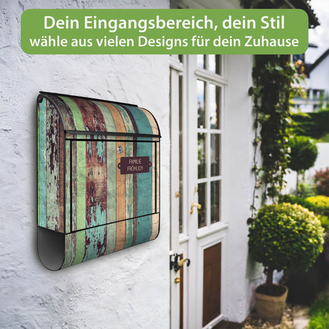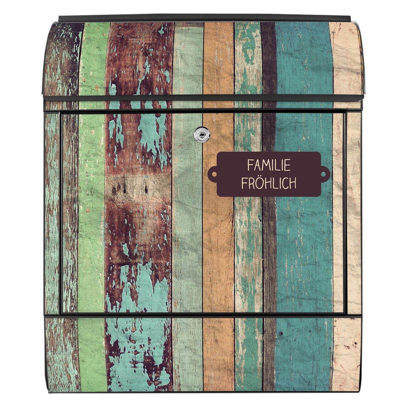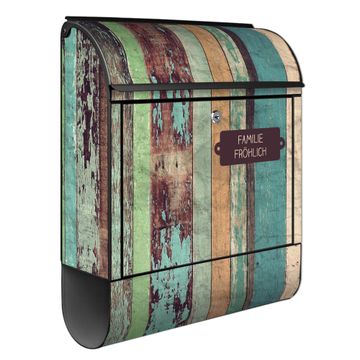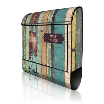 Großer Stahl Briefkasten Motiv Bunte Bretterwand