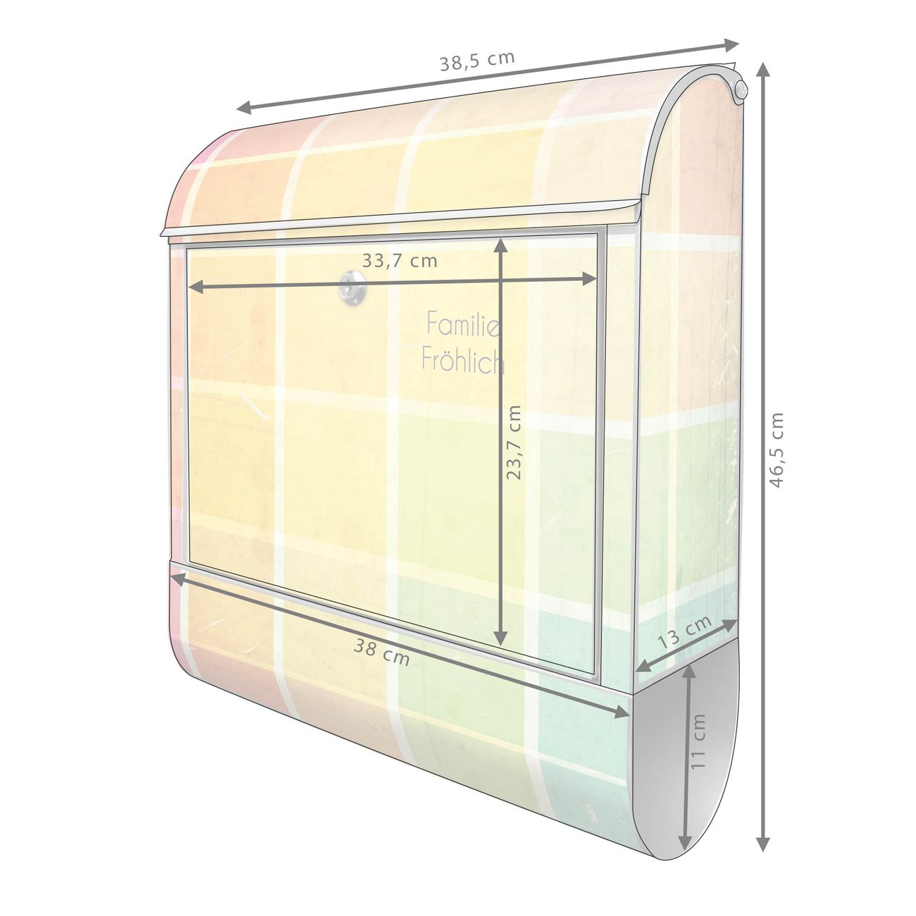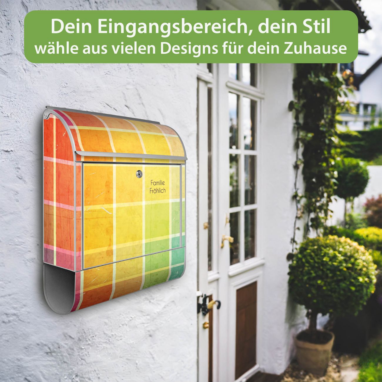DESIGN: Der Postkasten mit Motiv Motiv Bunte Glasbausteine hat ein sehr ansprechendes und ausgefallenes Design, damit entlocken Sie Ihren Nachbarn und dem Postboten ein Lächeln. Heben Sie Sich von der tristen grauen Masse ab, ohne auf Funktionalität zu verzichten. DETAILS: Der Postkasten besteht aus pulverbeschichtetem Stahl. Er ist 38x46x12,5cm groß. Das Motiv besteht aus einer wetter- und UV-resistenten Folie, die mit einem Schutzlaminat überzogen ist, sodass der Briefkasten zusätzlich vor Kratzern geschützt ist. Der Briefkasten wird mit Montagematerial, zusätzlich zwei Schlüssel sowie einer Bohrschablone geliefert. NUTZEN: Sie können diesen Briefkasten sowohl als Wandbriefkasten montieren oder einen passenden Ständer kaufen und als Standbriefkasten einbetonieren. Die Größe bietet genügend Platz für Sendungen aller Art, der Einwurf fasst auch größere A4 Sendungen. BANJADO: Ihr Briefkasten wird in Sachsen in einer kleinen Manufaktur von Hand veredelt. Die Motivfolie ist lösungsmittelfrei und schutzlaminiert für einen langen Halt. Wir legen großen Wert auf die Verbindung von Funktionalität und Design. Sie erhalten Handarbeit aus Sachsen.