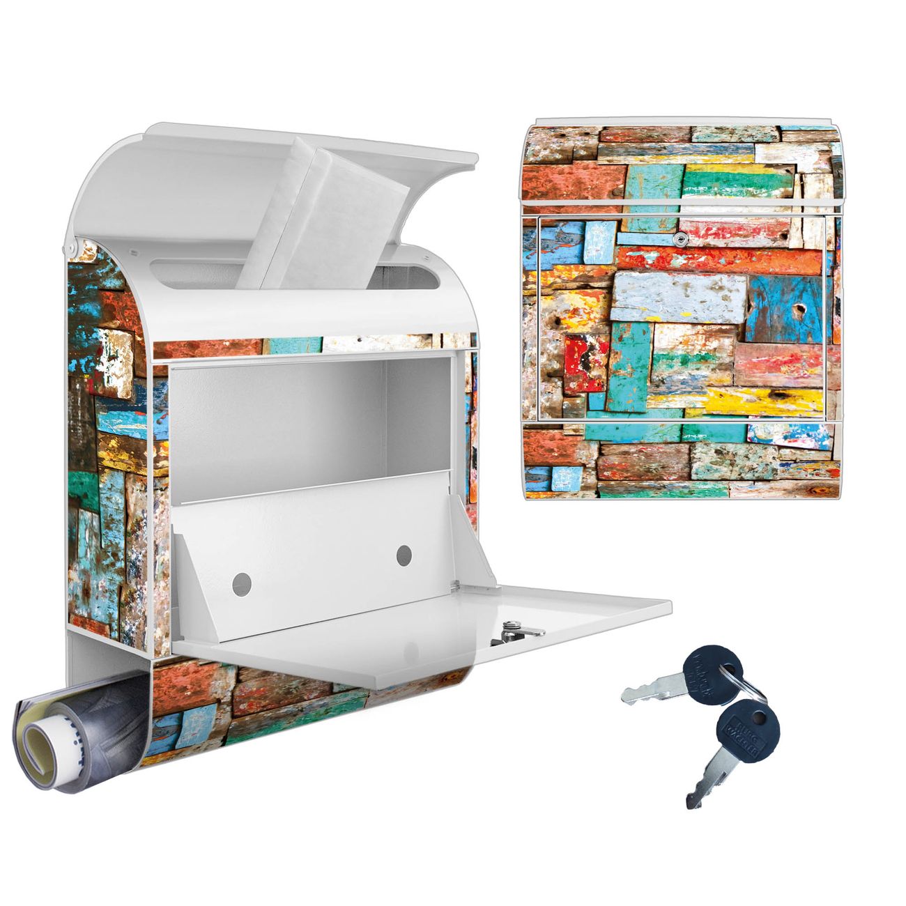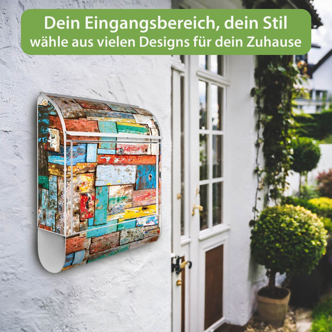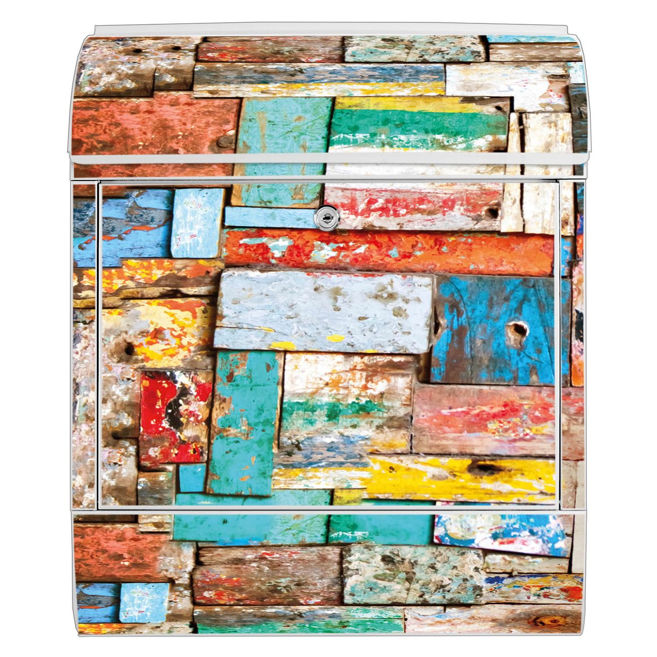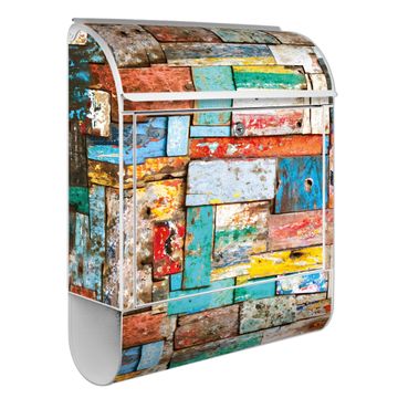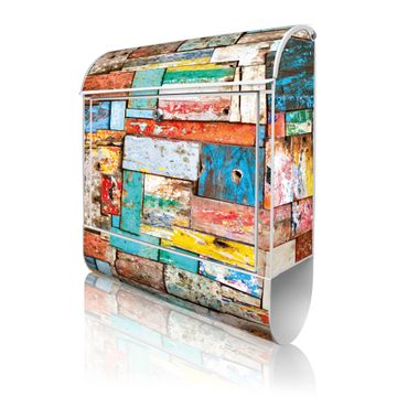 Großer Stahl Briefkasten Motiv Bunte Holzschindeln