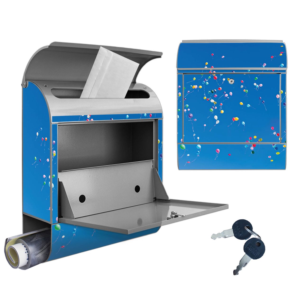 Großer Stahl Briefkasten Motiv Bunte Luftballons