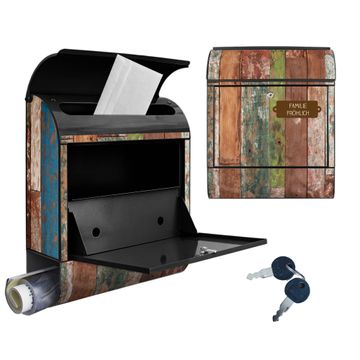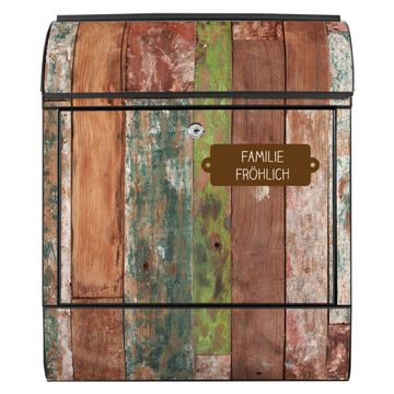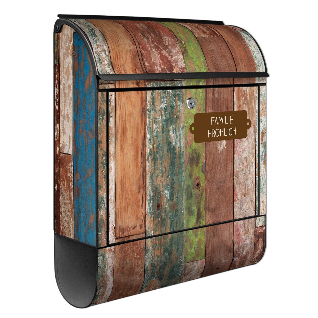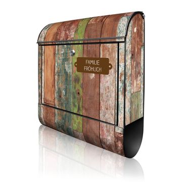 Großer Stahl Briefkasten Motiv Buntes Holz
