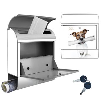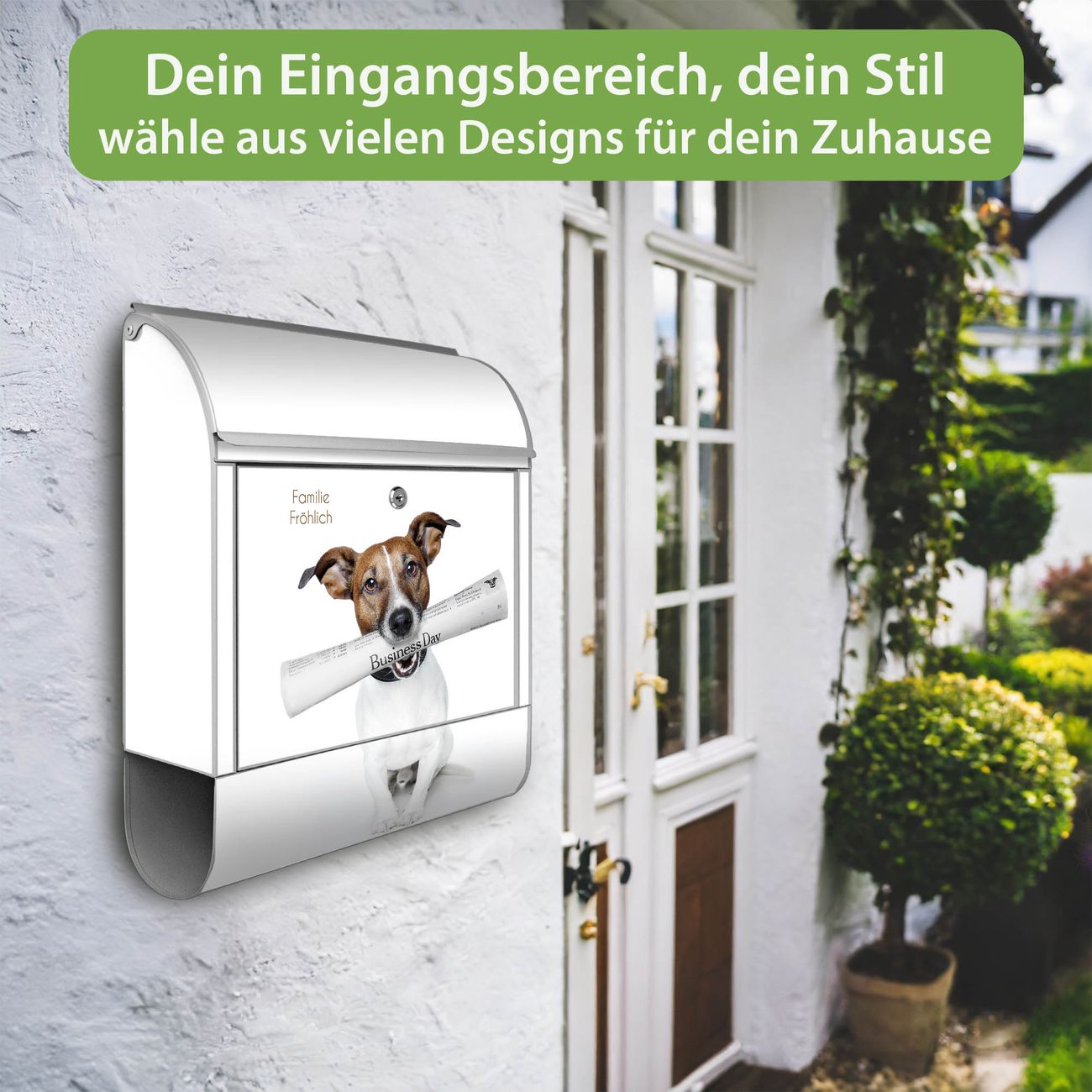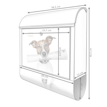 DESIGN: Der Postkasten mit Motiv Motiv Business Day hat ein sehr ansprechendes und ausgefallenes Design, damit entlocken Sie Ihren Nachbarn und dem Postboten ein Lächeln. Heben Sie Sich von der tristen grauen Masse ab, ohne auf Funktionalität zu verzichten. DETAILS: Der Postkasten besteht aus pulverbeschichtetem Stahl. Er ist 38x46x12,5cm groß. Das Motiv besteht aus einer wetter- und UV-resistenten Folie, die mit einem Schutzlaminat überzogen ist, sodass der Briefkasten zusätzlich vor Kratzern geschützt ist. Der Briefkasten wird mit Montagematerial, zusätzlich zwei Schlüssel sowie einer Bohrschablone geliefert. NUTZEN: Sie können diesen Briefkasten sowohl als Wandbriefkasten montieren oder einen passenden Ständer kaufen und als Standbriefkasten einbetonieren. Die Größe bietet genügend Platz für Sendungen aller Art, der Einwurf fasst auch größere A4 Sendungen. BANJADO: Ihr Briefkasten wird in Sachsen in einer kleinen Manufaktur von Hand veredelt. Die Motivfolie ist lösungsmittelfrei und schutzlaminiert für einen langen Halt. Wir legen großen Wert auf die Verbindung von Funktionalität und Design. Sie erhalten Handarbeit aus Sachsen.