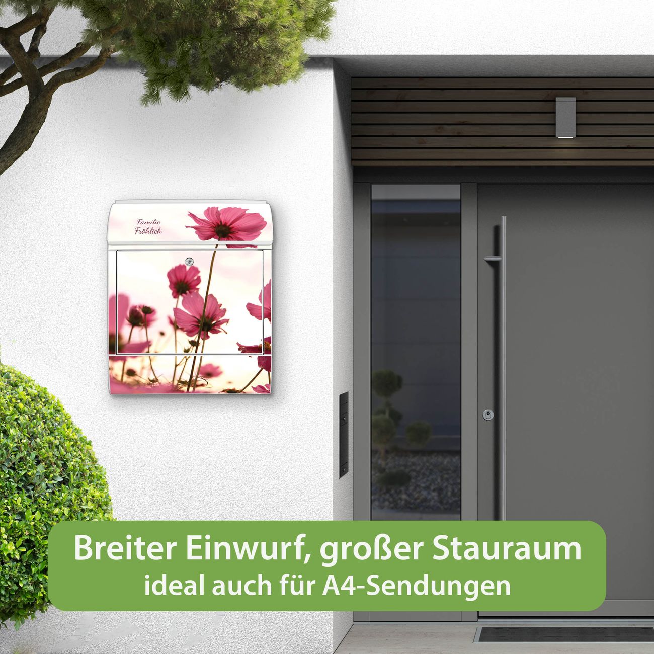 Großer Stahl Briefkasten Motiv Cosmea