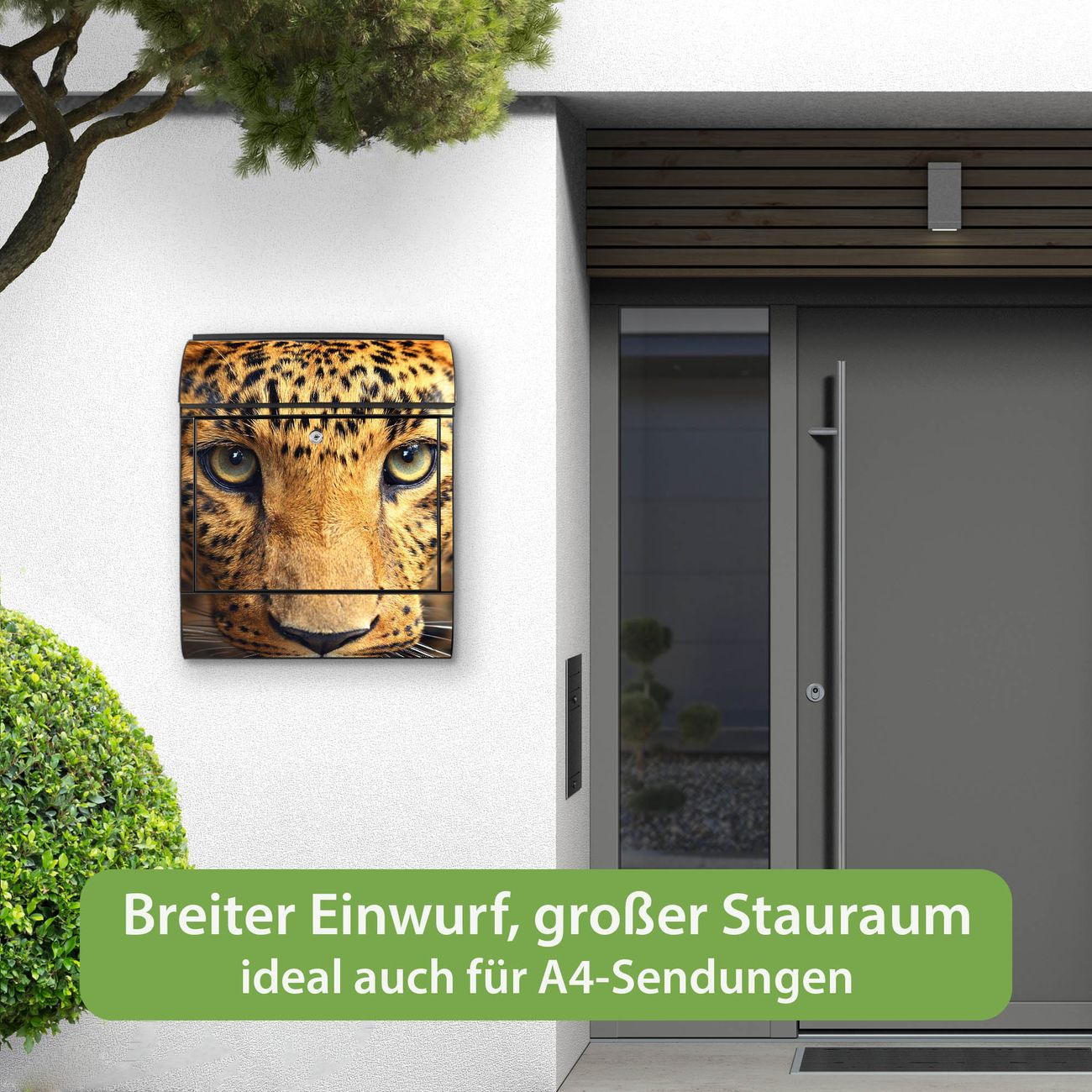 DESIGN: Der Postkasten mit Motiv Motiv Daphne hat ein sehr ansprechendes und ausgefallenes Design, damit entlocken Sie Ihren Nachbarn und dem Postboten ein Lächeln. Heben Sie Sich von der tristen grauen Masse ab, ohne auf Funktionalität zu verzichten. DETAILS: Der Postkasten besteht aus pulverbeschichtetem Stahl. Er ist 38x46x12,5cm groß. Das Motiv besteht aus einer wetter- und UV-resistenten Folie, die mit einem Schutzlaminat überzogen ist, sodass der Briefkasten zusätzlich vor Kratzern geschützt ist. Der Briefkasten wird mit Montagematerial, zusätzlich zwei Schlüssel sowie einer Bohrschablone geliefert. NUTZEN: Sie können diesen Briefkasten sowohl als Wandbriefkasten montieren oder einen passenden Ständer kaufen und als Standbriefkasten einbetonieren. Die Größe bietet genügend Platz für Sendungen aller Art, der Einwurf fasst auch größere A4 Sendungen. BANJADO: Ihr Briefkasten wird in Sachsen in einer kleinen Manufaktur von Hand veredelt. Die Motivfolie ist lösungsmittelfrei und schutzlaminiert für einen langen Halt. Wir legen großen Wert auf die Verbindung von Funktionalität und Design. Sie erhalten Handarbeit aus Sachsen.