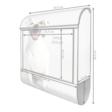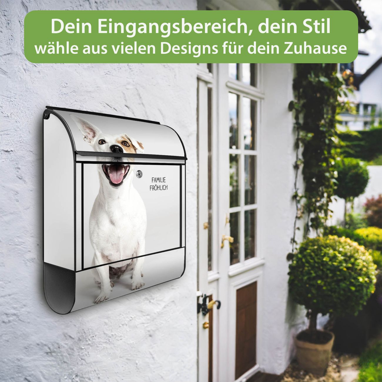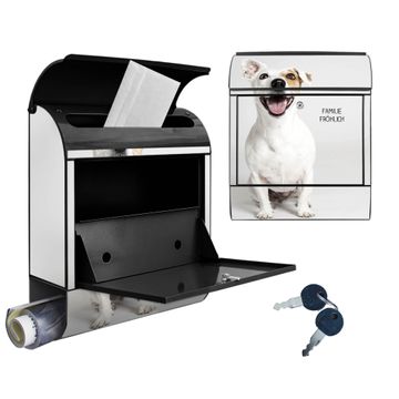 DESIGN: Der Postkasten mit Motiv Motiv Derek hat ein sehr ansprechendes und ausgefallenes Design, damit entlocken Sie Ihren Nachbarn und dem Postboten ein Lächeln. Heben Sie Sich von der tristen grauen Masse ab, ohne auf Funktionalität zu verzichten. DETAILS: Der Postkasten besteht aus pulverbeschichtetem Stahl. Er ist 38x46x12,5cm groß. Das Motiv besteht aus einer wetter- und UV-resistenten Folie, die mit einem Schutzlaminat überzogen ist, sodass der Briefkasten zusätzlich vor Kratzern geschützt ist. Der Briefkasten wird mit Montagematerial, zusätzlich zwei Schlüssel sowie einer Bohrschablone geliefert. NUTZEN: Sie können diesen Briefkasten sowohl als Wandbriefkasten montieren oder einen passenden Ständer kaufen und als Standbriefkasten einbetonieren. Die Größe bietet genügend Platz für Sendungen aller Art, der Einwurf fasst auch größere A4 Sendungen. BANJADO: Ihr Briefkasten wird in Sachsen in einer kleinen Manufaktur von Hand veredelt. Die Motivfolie ist lösungsmittelfrei und schutzlaminiert für einen langen Halt. Wir legen großen Wert auf die Verbindung von Funktionalität und Design. Sie erhalten Handarbeit aus Sachsen.