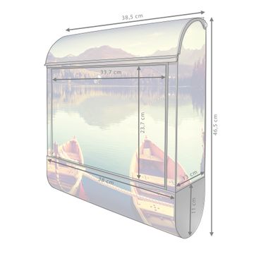 DESIGN: Der Postkasten mit Motiv Motiv Drei Boote Am Steg hat ein sehr ansprechendes und ausgefallenes Design, damit entlocken Sie Ihren Nachbarn und dem Postboten ein Lächeln. Heben Sie Sich von der tristen grauen Masse ab, ohne auf Funktionalität zu verzichten. DETAILS: Der Postkasten besteht aus pulverbeschichtetem Stahl. Er ist 38x46x12,5cm groß. Das Motiv besteht aus einer wetter- und UV-resistenten Folie, die mit einem Schutzlaminat überzogen ist, sodass der Briefkasten zusätzlich vor Kratzern geschützt ist. Der Briefkasten wird mit Montagematerial, zusätzlich zwei Schlüssel sowie einer Bohrschablone geliefert. NUTZEN: Sie können diesen Briefkasten sowohl als Wandbriefkasten montieren oder einen passenden Ständer kaufen und als Standbriefkasten einbetonieren. Die Größe bietet genügend Platz für Sendungen aller Art, der Einwurf fasst auch größere A4 Sendungen. BANJADO: Ihr Briefkasten wird in Sachsen in einer kleinen Manufaktur von Hand veredelt. Die Motivfolie ist lösungsmittelfrei und schutzlaminiert für einen langen Halt. Wir legen großen Wert auf die Verbindung von Funktionalität und Design. Sie erhalten Handarbeit aus Sachsen.