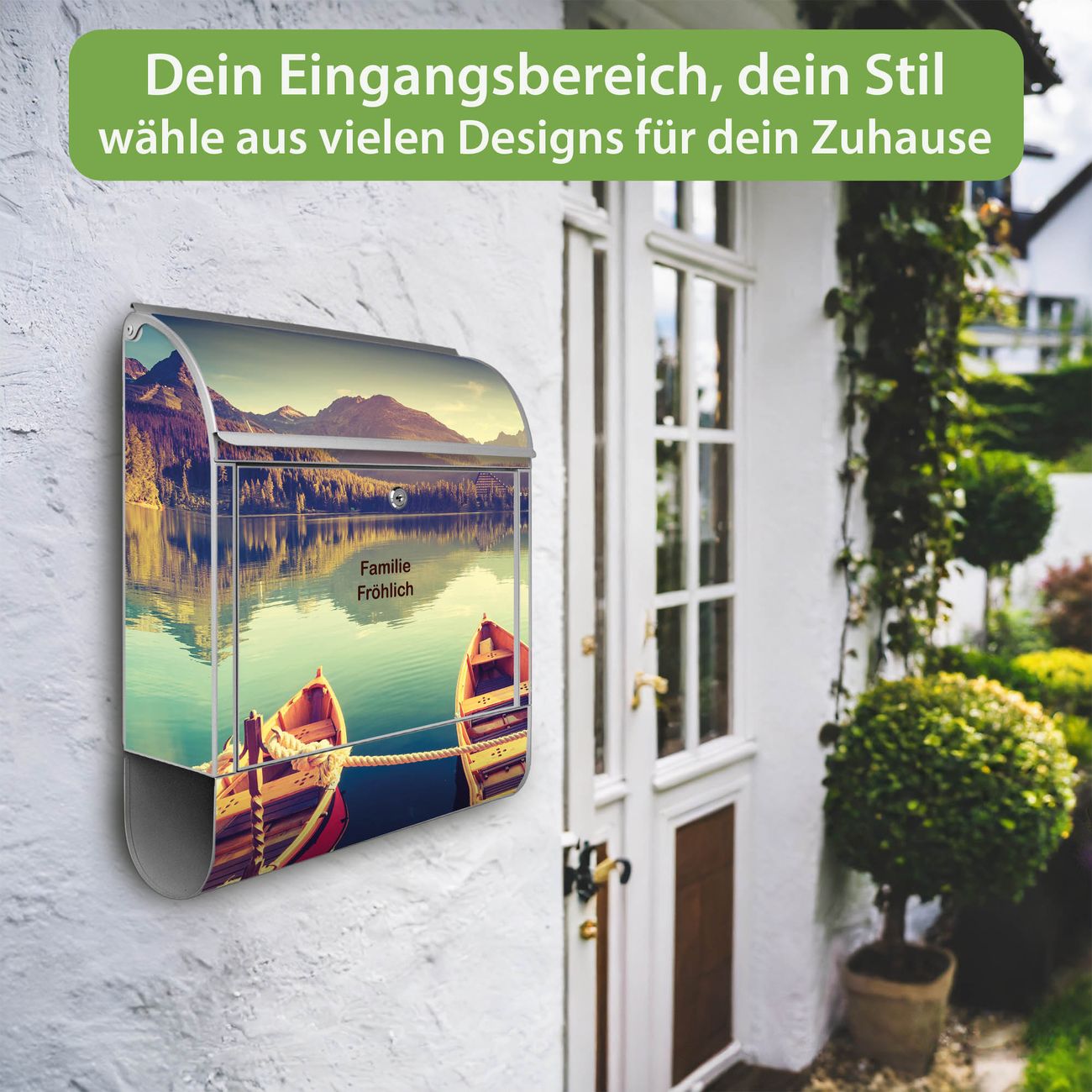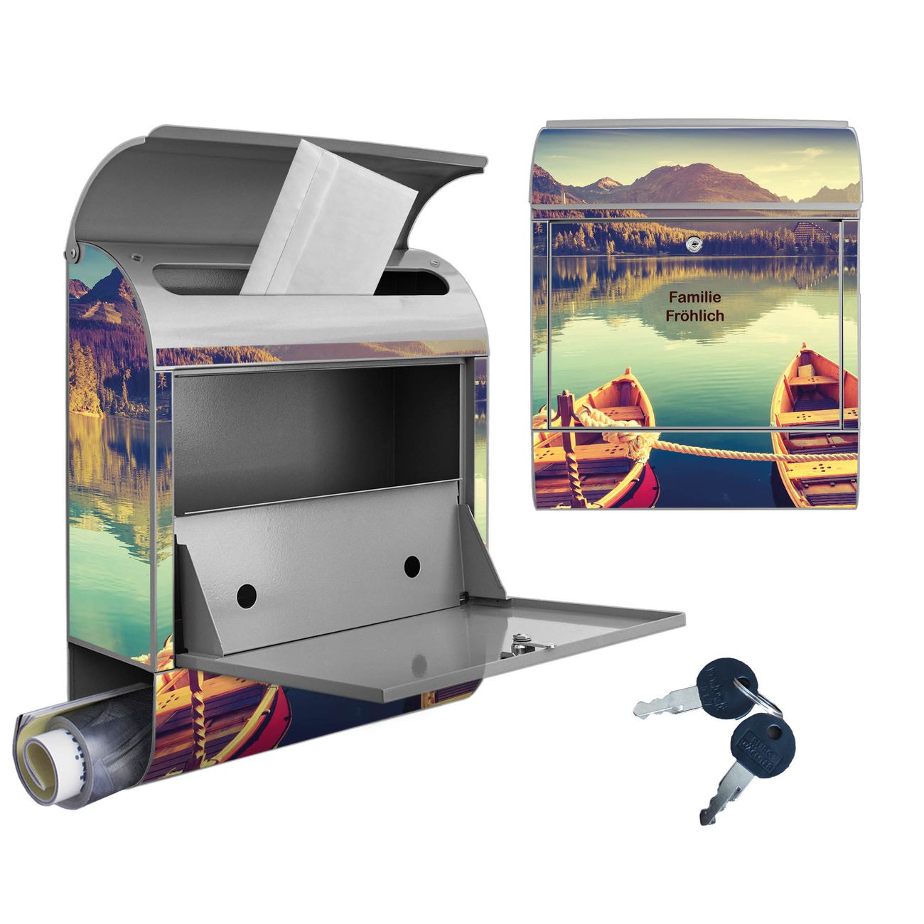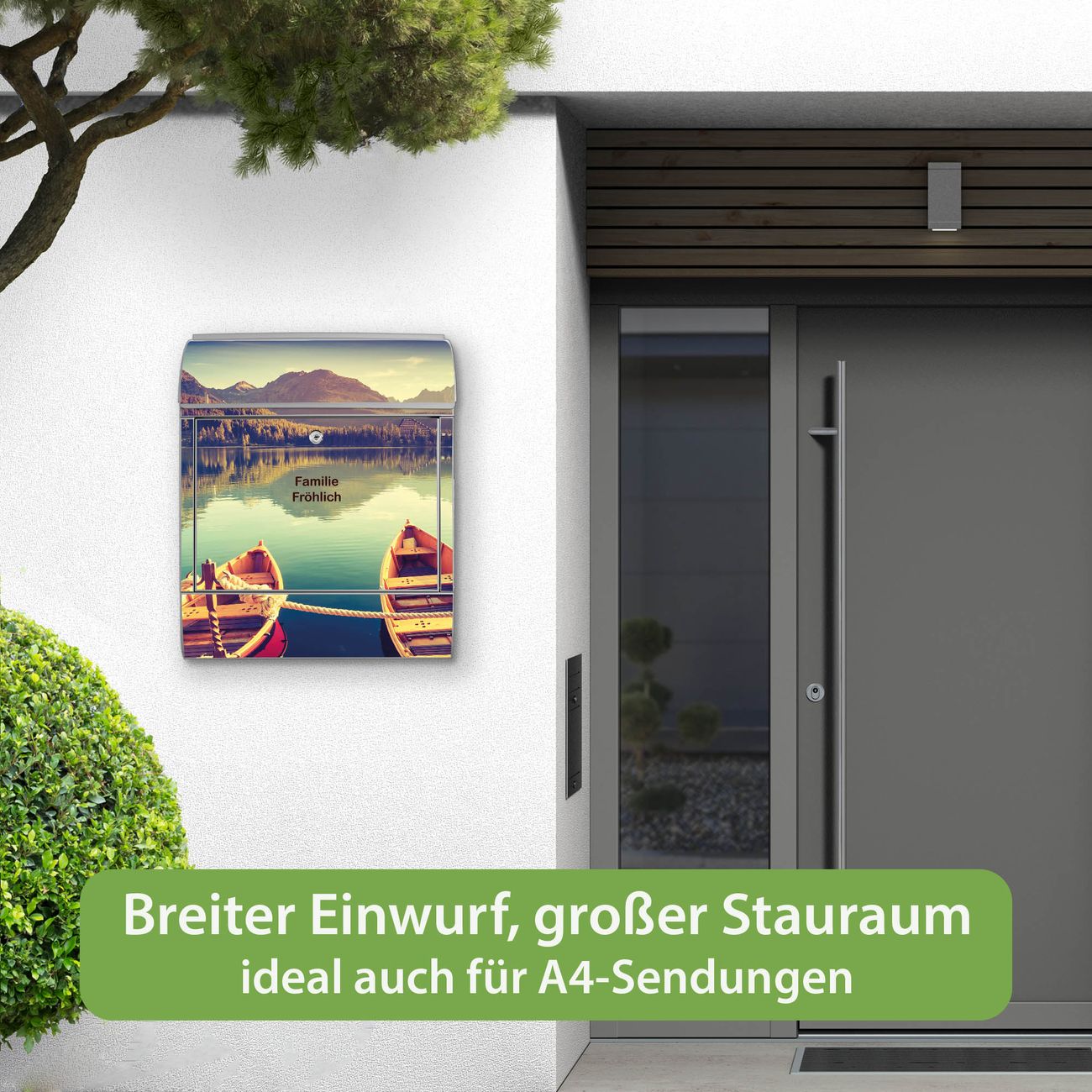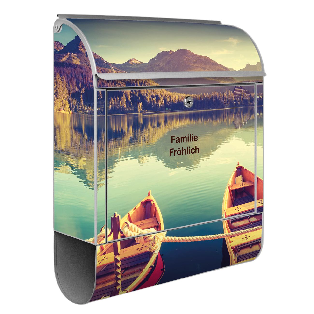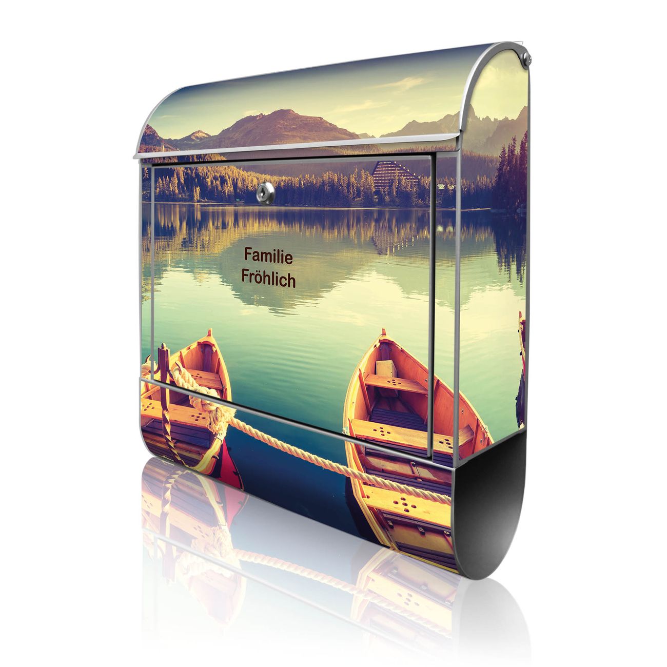 Großer Stahl Briefkasten Motiv Drei Boote Am Steg