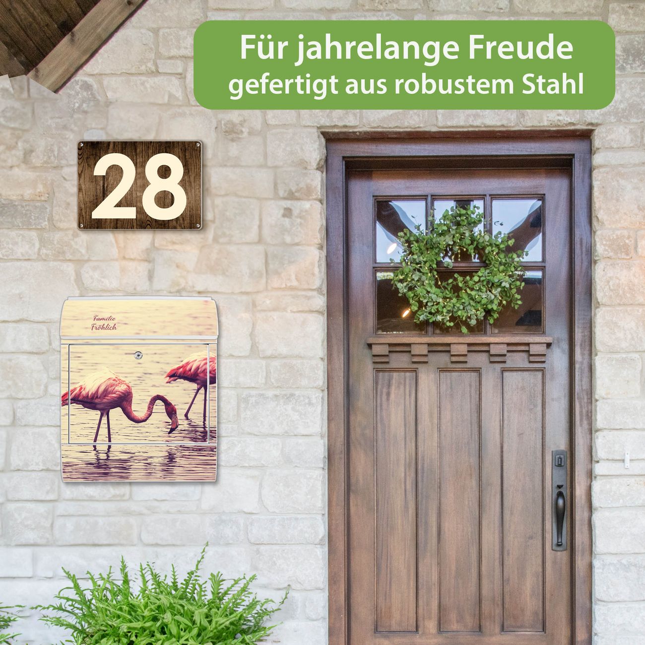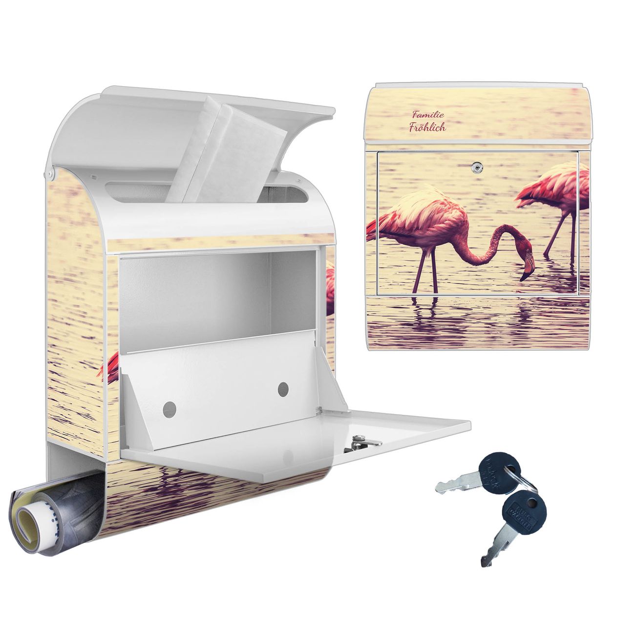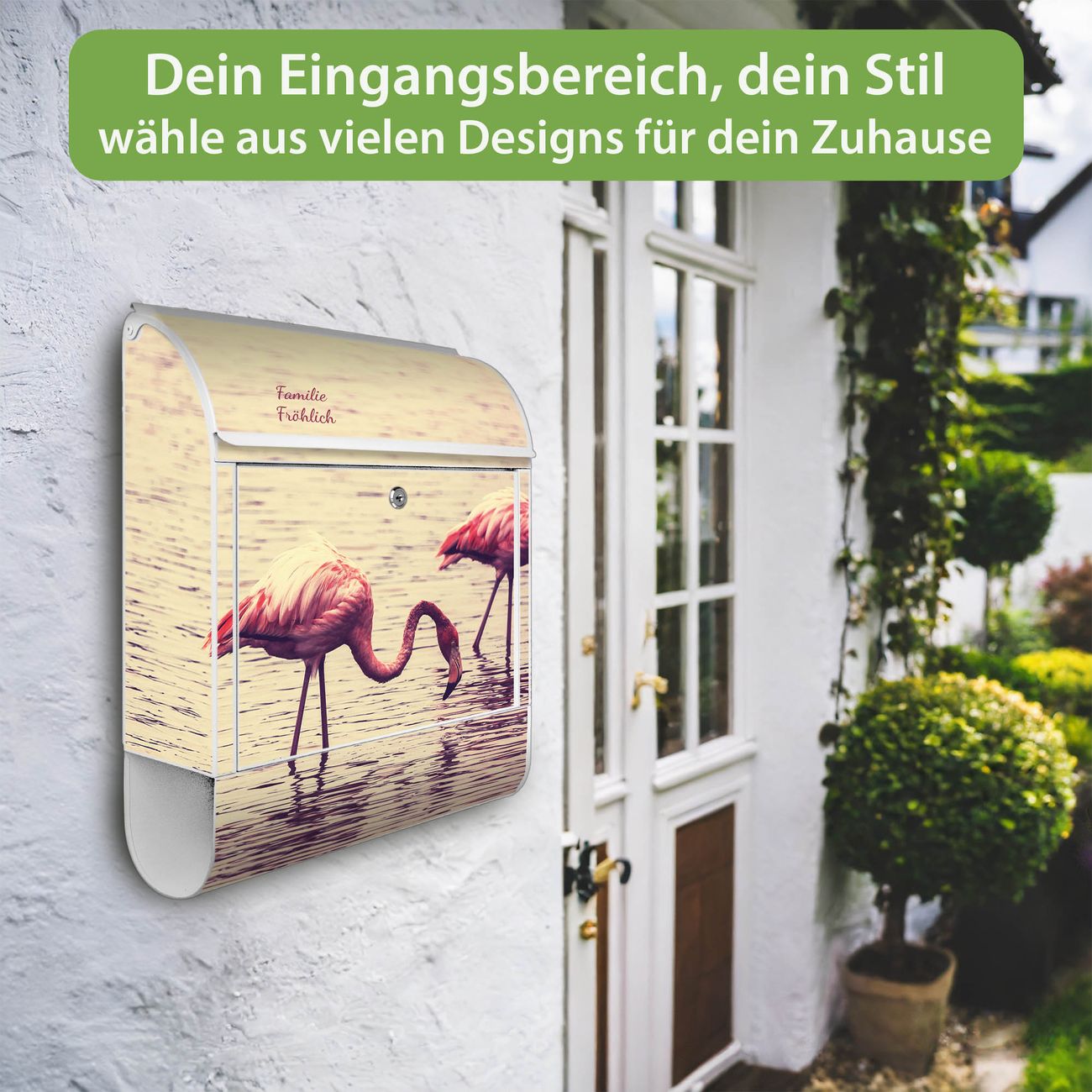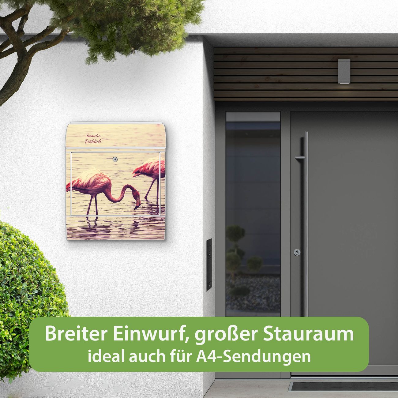 Großer Stahl Briefkasten Motiv Drei Flamnigos