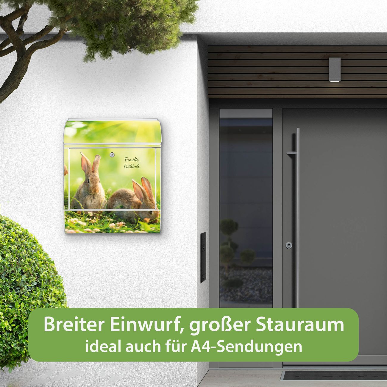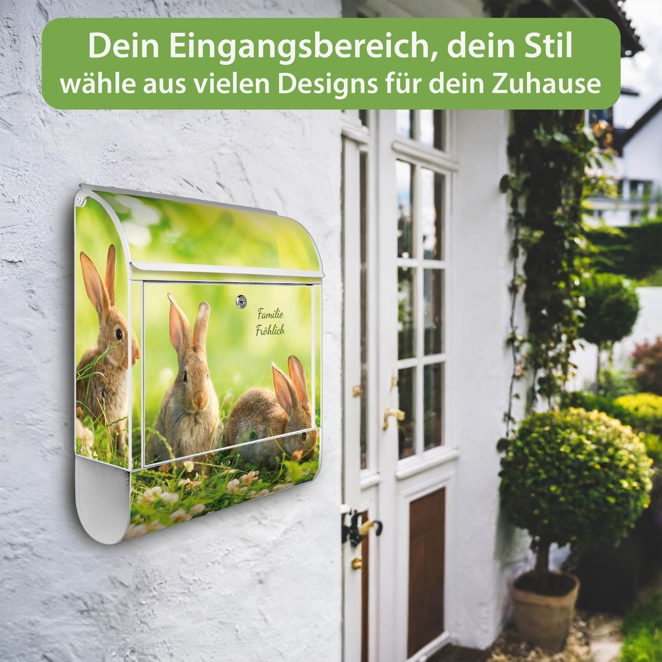 Großer Stahl Briefkasten Motiv Drei Hasen