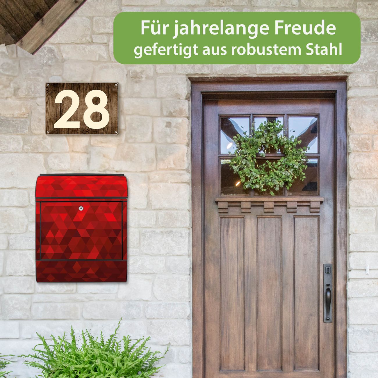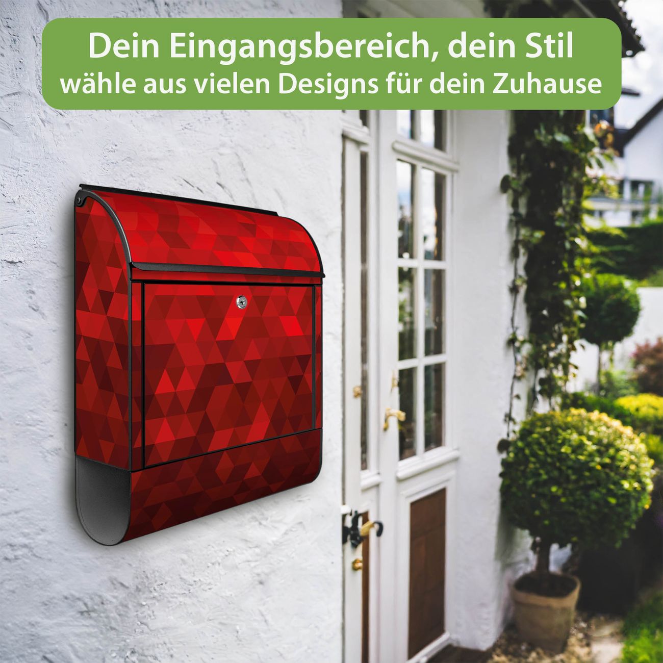 Großer Stahl Briefkasten Motiv Dreiecke Rot