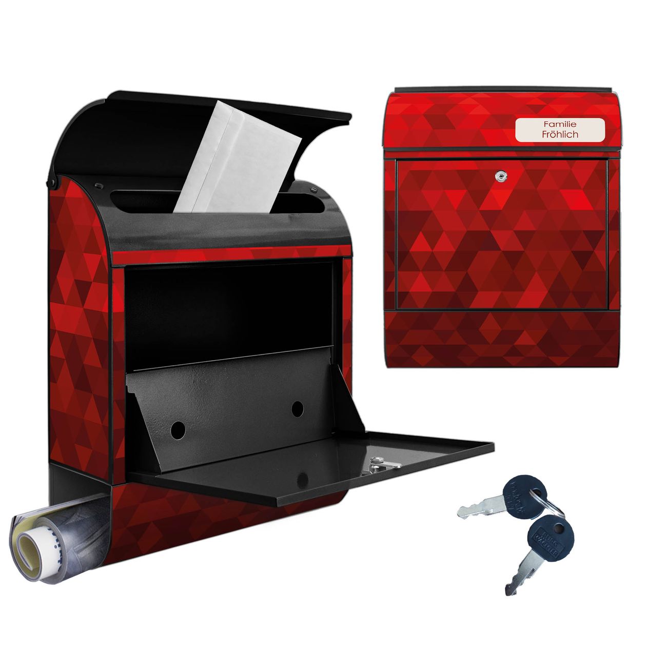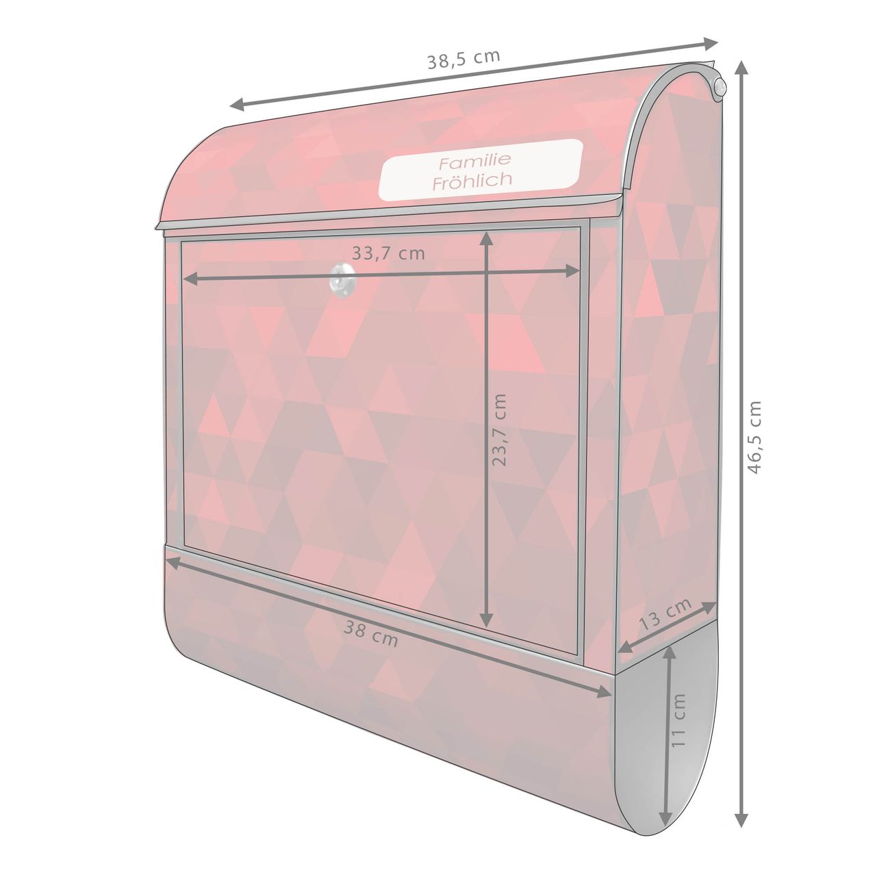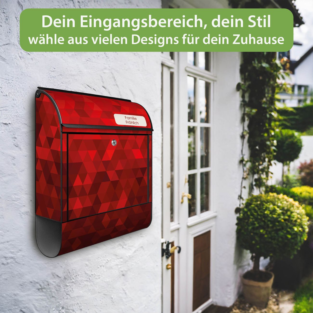 Großer Stahl Briefkasten Motiv Dreiecke Rot