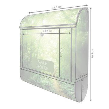 DESIGN: Der Postkasten mit Motiv Motiv Dschungel Malaysia hat ein sehr ansprechendes und ausgefallenes Design, damit entlocken Sie Ihren Nachbarn und dem Postboten ein Lächeln. Heben Sie Sich von der tristen grauen Masse ab, ohne auf Funktionalität zu verzichten. DETAILS: Der Postkasten besteht aus pulverbeschichtetem Stahl. Er ist 38x46x12,5cm groß. Das Motiv besteht aus einer wetter- und UV-resistenten Folie, die mit einem Schutzlaminat überzogen ist, sodass der Briefkasten zusätzlich vor Kratzern geschützt ist. Der Briefkasten wird mit Montagematerial, zusätzlich zwei Schlüssel sowie einer Bohrschablone geliefert. NUTZEN: Sie können diesen Briefkasten sowohl als Wandbriefkasten montieren oder einen passenden Ständer kaufen und als Standbriefkasten einbetonieren. Die Größe bietet genügend Platz für Sendungen aller Art, der Einwurf fasst auch größere A4 Sendungen. BANJADO: Ihr Briefkasten wird in Sachsen in einer kleinen Manufaktur von Hand veredelt. Die Motivfolie ist lösungsmittelfrei und schutzlaminiert für einen langen Halt. Wir legen großen Wert auf die Verbindung von Funktionalität und Design. Sie erhalten Handarbeit aus Sachsen.