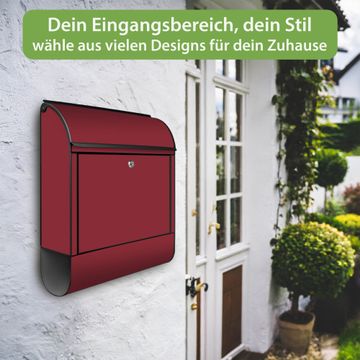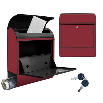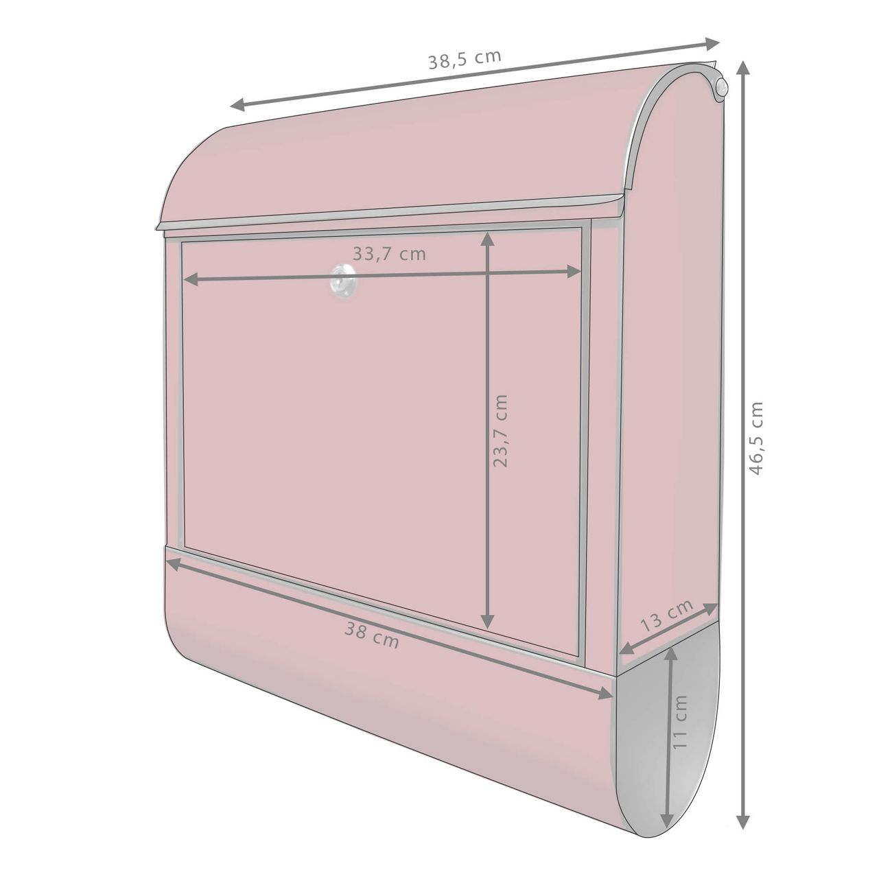 DESIGN: Der Postkasten mit Motiv Farbe Burgund hat ein sehr ansprechendes und ausgefallenes Design, damit entlocken Sie Ihren Nachbarn und dem Postboten ein Lächeln. Heben Sie Sich von der tristen grauen Masse ab, ohne auf Funktionalität zu verzichten. DETAILS: Der Postkasten besteht aus pulverbeschichtetem Stahl. Er ist 38x46x12,5cm groß. Das Motiv besteht aus einer wetter- und UV-resistenten Folie, die mit einem Schutzlaminat überzogen ist, sodass der Briefkasten zusätzlich vor Kratzern geschützt ist. Der Briefkasten wird mit Montagematerial, zusätzlich zwei Schlüssel sowie einer Bohrschablone geliefert. NUTZEN: Sie können diesen Briefkasten sowohl als Wandbriefkasten montieren oder einen passenden Ständer kaufen und als Standbriefkasten einbetonieren. Die Größe bietet genügend Platz für Sendungen aller Art, der Einwurf fasst auch größere A4 Sendungen. BANJADO: Ihr Briefkasten wird in Sachsen in einer kleinen Manufaktur von Hand veredelt. Die Motivfolie ist lösungsmittelfrei und schutzlaminiert für einen langen Halt. Wir legen großen Wert auf die Verbindung von Funktionalität und Design. Sie erhalten Handarbeit aus Sachsen.