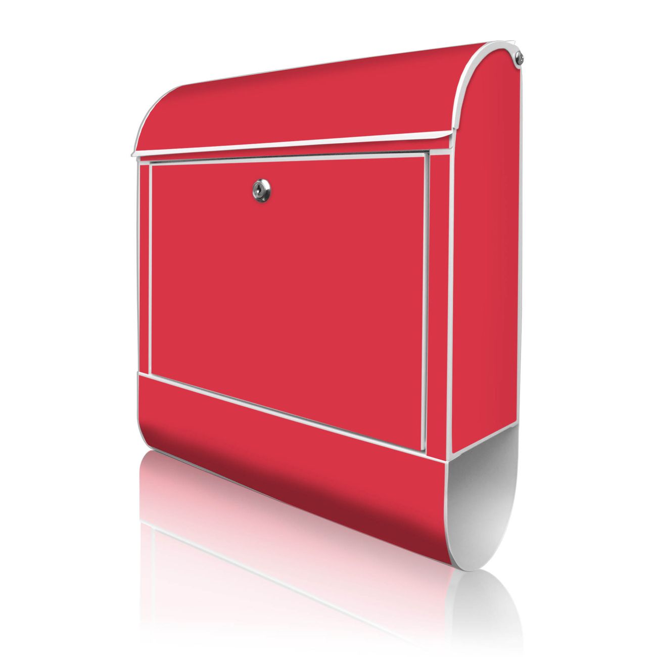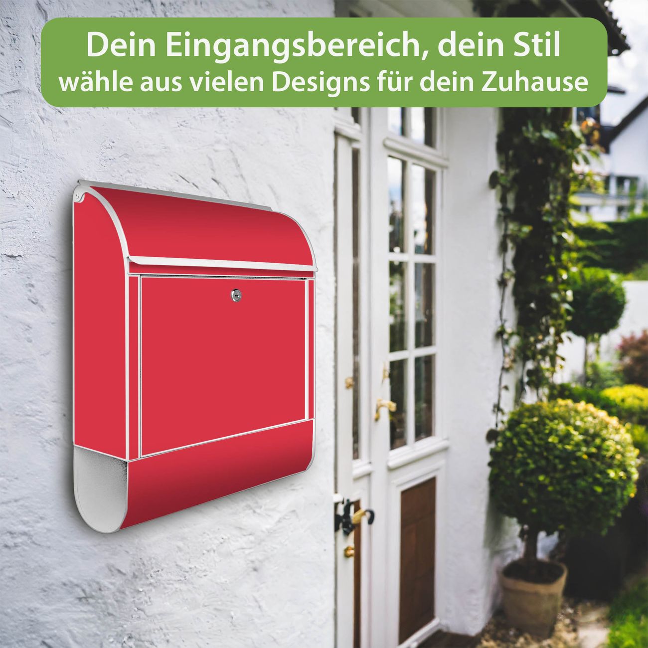 DESIGN: Der Postkasten mit Motiv Farbe Feuerrot hat ein sehr ansprechendes und ausgefallenes Design, damit entlocken Sie Ihren Nachbarn und dem Postboten ein Lächeln. Heben Sie Sich von der tristen grauen Masse ab, ohne auf Funktionalität zu verzichten. DETAILS: Der Postkasten besteht aus pulverbeschichtetem Stahl. Er ist 38x46x12,5cm groß. Das Motiv besteht aus einer wetter- und UV-resistenten Folie, die mit einem Schutzlaminat überzogen ist, sodass der Briefkasten zusätzlich vor Kratzern geschützt ist. Der Briefkasten wird mit Montagematerial, zusätzlich zwei Schlüssel sowie einer Bohrschablone geliefert. NUTZEN: Sie können diesen Briefkasten sowohl als Wandbriefkasten montieren oder einen passenden Ständer kaufen und als Standbriefkasten einbetonieren. Die Größe bietet genügend Platz für Sendungen aller Art, der Einwurf fasst auch größere A4 Sendungen. BANJADO: Ihr Briefkasten wird in Sachsen in einer kleinen Manufaktur von Hand veredelt. Die Motivfolie ist lösungsmittelfrei und schutzlaminiert für einen langen Halt. Wir legen großen Wert auf die Verbindung von Funktionalität und Design. Sie erhalten Handarbeit aus Sachsen.