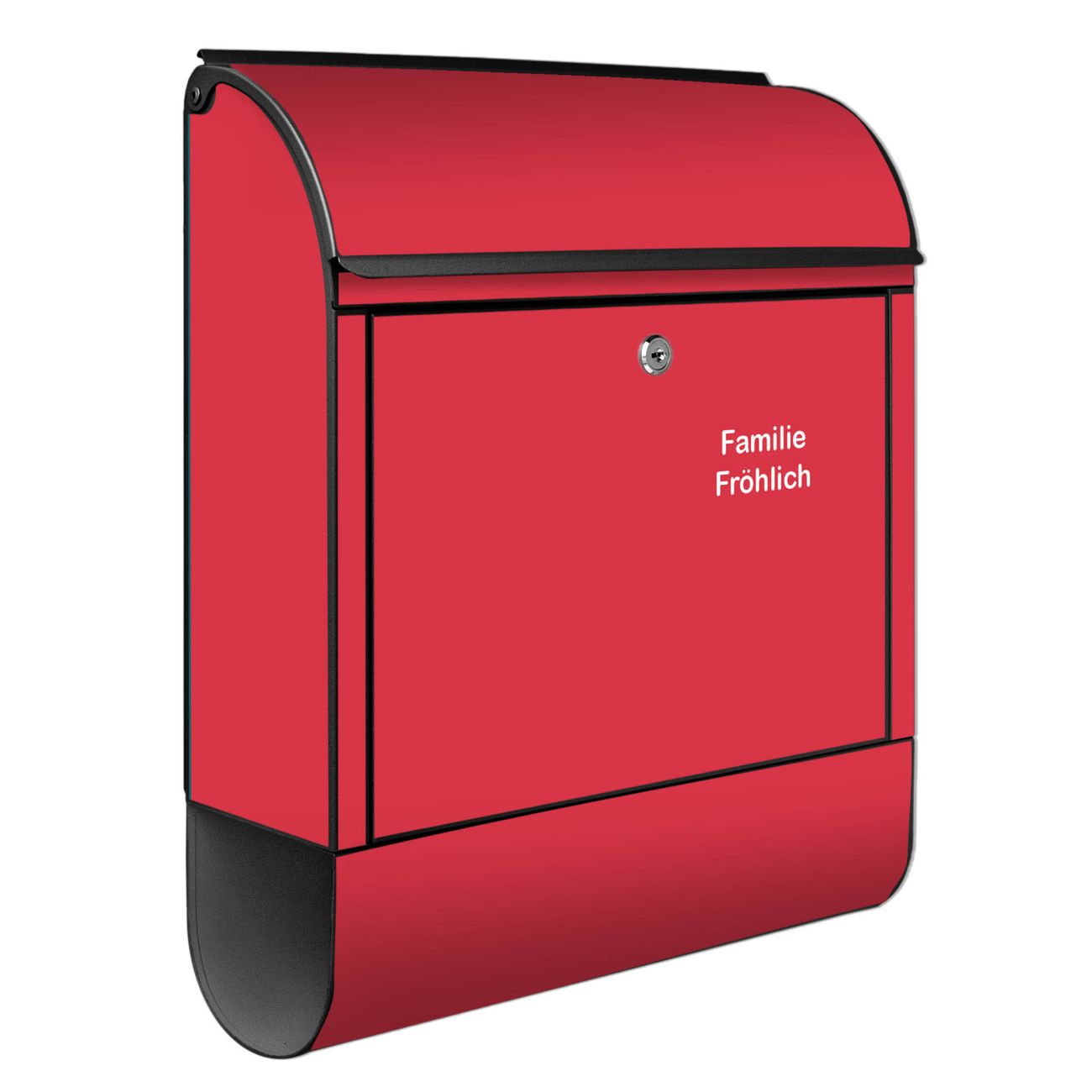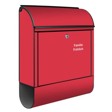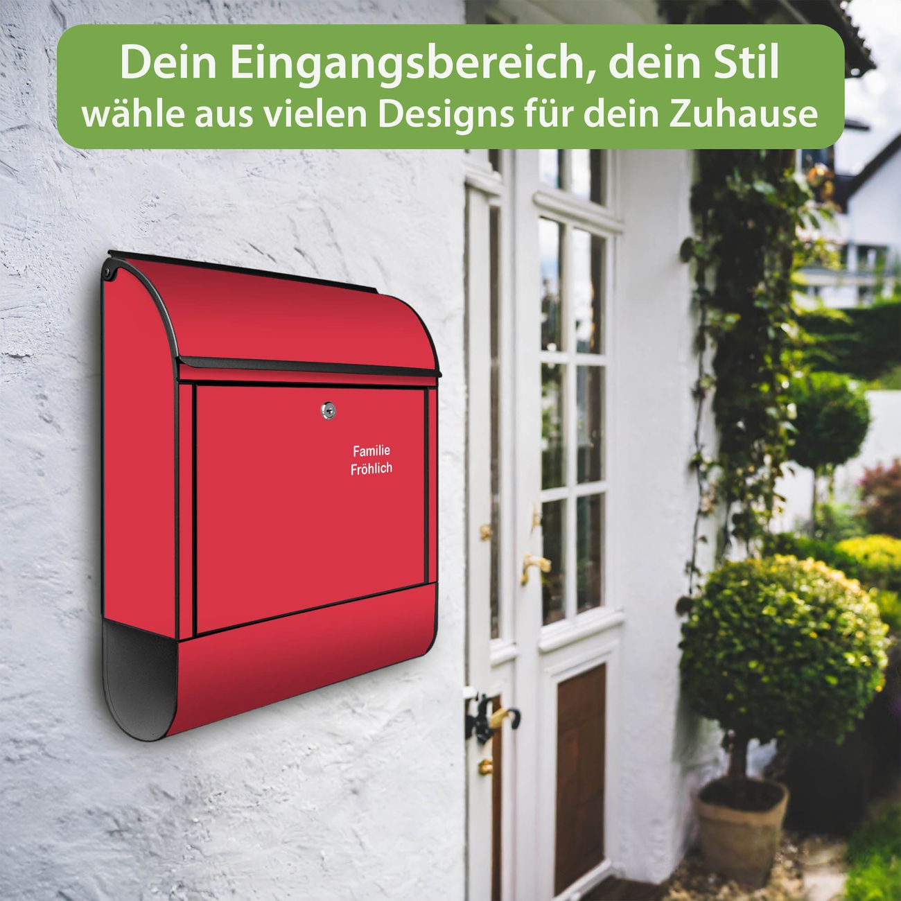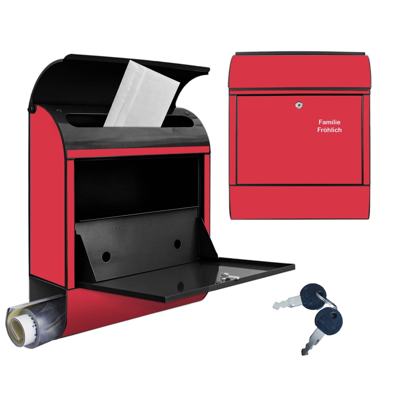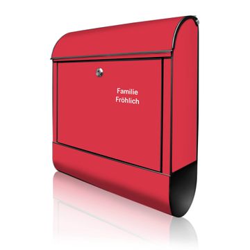 DESIGN: Der Postkasten mit Motiv Farbe Feuerrot hat ein sehr ansprechendes und ausgefallenes Design, damit entlocken Sie Ihren Nachbarn und dem Postboten ein Lächeln. Heben Sie Sich von der tristen grauen Masse ab, ohne auf Funktionalität zu verzichten. DETAILS: Der Postkasten besteht aus pulverbeschichtetem Stahl. Er ist 38x46x12,5cm groß. Das Motiv besteht aus einer wetter- und UV-resistenten Folie, die mit einem Schutzlaminat überzogen ist, sodass der Briefkasten zusätzlich vor Kratzern geschützt ist. Der Briefkasten wird mit Montagematerial, zusätzlich zwei Schlüssel sowie einer Bohrschablone geliefert. NUTZEN: Sie können diesen Briefkasten sowohl als Wandbriefkasten montieren oder einen passenden Ständer kaufen und als Standbriefkasten einbetonieren. Die Größe bietet genügend Platz für Sendungen aller Art, der Einwurf fasst auch größere A4 Sendungen. BANJADO: Ihr Briefkasten wird in Sachsen in einer kleinen Manufaktur von Hand veredelt. Die Motivfolie ist lösungsmittelfrei und schutzlaminiert für einen langen Halt. Wir legen großen Wert auf die Verbindung von Funktionalität und Design. Sie erhalten Handarbeit aus Sachsen.