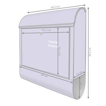 DESIGN: Der Postkasten mit Motiv Farbe Lavendel hat ein sehr ansprechendes und ausgefallenes Design, damit entlocken Sie Ihren Nachbarn und dem Postboten ein Lächeln. Heben Sie Sich von der tristen grauen Masse ab, ohne auf Funktionalität zu verzichten. DETAILS: Der Postkasten besteht aus pulverbeschichtetem Stahl. Er ist 38x46x12,5cm groß. Das Motiv besteht aus einer wetter- und UV-resistenten Folie, die mit einem Schutzlaminat überzogen ist, sodass der Briefkasten zusätzlich vor Kratzern geschützt ist. Der Briefkasten wird mit Montagematerial, zusätzlich zwei Schlüssel sowie einer Bohrschablone geliefert. NUTZEN: Sie können diesen Briefkasten sowohl als Wandbriefkasten montieren oder einen passenden Ständer kaufen und als Standbriefkasten einbetonieren. Die Größe bietet genügend Platz für Sendungen aller Art, der Einwurf fasst auch größere A4 Sendungen. BANJADO: Ihr Briefkasten wird in Sachsen in einer kleinen Manufaktur von Hand veredelt. Die Motivfolie ist lösungsmittelfrei und schutzlaminiert für einen langen Halt. Wir legen großen Wert auf die Verbindung von Funktionalität und Design. Sie erhalten Handarbeit aus Sachsen.